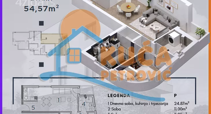 Na prodaju stan u izgradnji na Paliluli, u neposrednoj blizini Hotela „Tami residence“ i kompleksa „Novi Niš”. Stan je projektovane površine 54,57m2, nalazi se na prvom spratu. Po strukturi je dovoiposoban i sastoji se od ulaznog hodnika, dnevne sobe sa delom za trpezariju i kuhinju, spavaće sobe, dečije sobe, kupatila i terase. Gradi se po visokim standardima, demit fasada, energetski pasoš, spoljna PVC (antracit) stolarija, podne obloge od prvoklasne keramike, svaka jedinica dobija kotao na struju i kompletne instalacije za podno grejanje, podrumsku prostoriju, a parking mesto se doplaćuje. Očekivani rok zavšetka radova je sredina 2026-te godine.