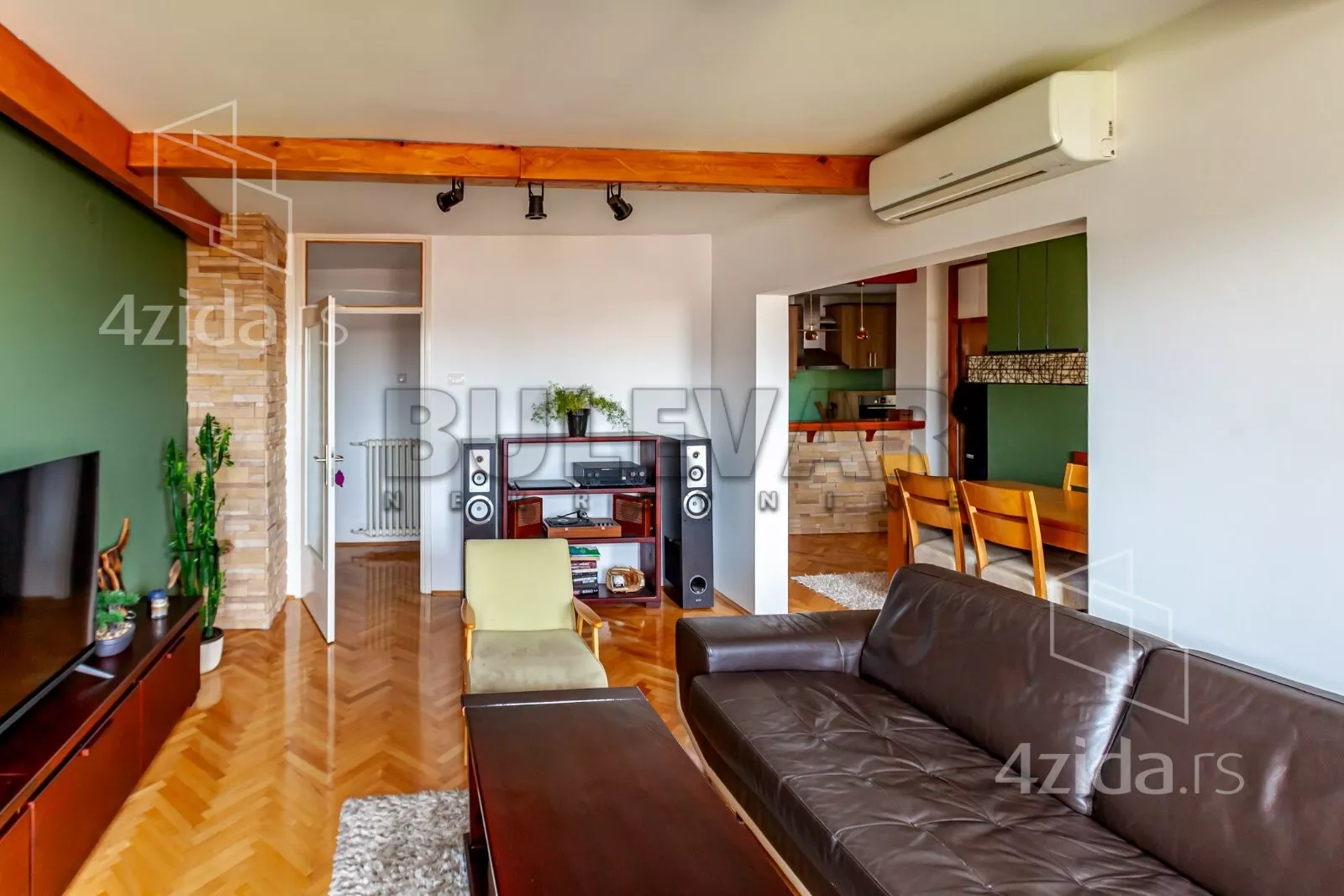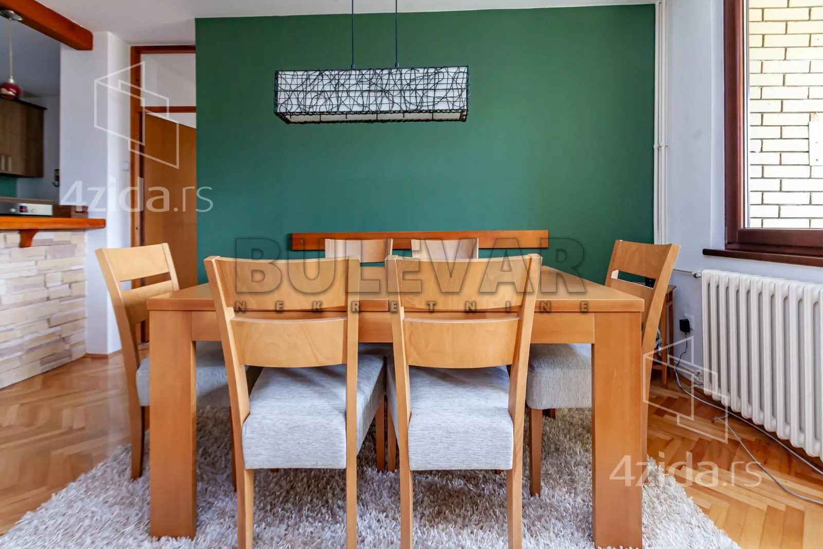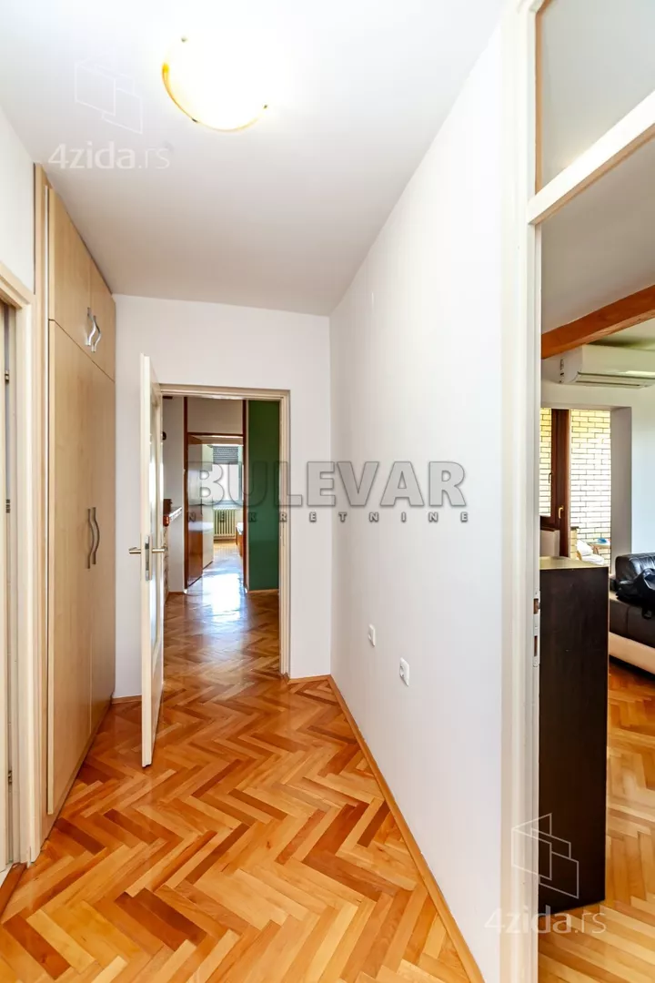 Na prodaju komforni trosoban stan 85 m2, u u blizini DIF-a i FZNR, okružen prelepim parkovskim zelenilom. Stan se nalazi na sedmom spratu, kvalitetne, vojne zgrade, sa fasadnom ciglom sa dva lifta. Stan se sastoji od ulaznog hodnika, dnevnog boravka, toaleta, trpezarije sa izlaskom na veću terasu, kuhinje i ostave sa izlaskom na manju terasu, hodnika koji odvaja spavaći deo, sa dve spavaće sobe i kupatilom. Stan je renoviran, u odličnom stanju. Na podovima je parket, stolarija u prvom delu stana je drvo-aluminjum a u spavaćem delu PVC, grejanje je centralno. U stanu ostaje sav ugradni nameštaj i komletna kuhinja, bez frižidera i mašine za pranje sudova. Stan ima pripadajuću ostavu u potkrovlju i parking mesto u dvorištu sa rampom. Stan je uknjižen kao svojina 1/1 u zgradi sa upotrebnom dozvolom te je moguća kupovina putem stambenog kredita. Za više informacija, stojimo Vam na raspolaganju.