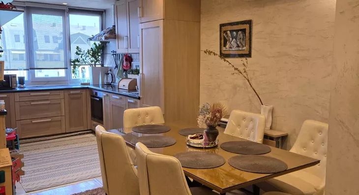- Opremljenost: Namešteno - internet, TV, klima, centralna klima, ventilacija, veš mašina, kuhinjski elementi, sudo mašina, frižider, zamrzivač, mikrotalasna rerna, šporet, rerna, ležaj, plakar, ugradni plakar, kancelarijski nameštaj