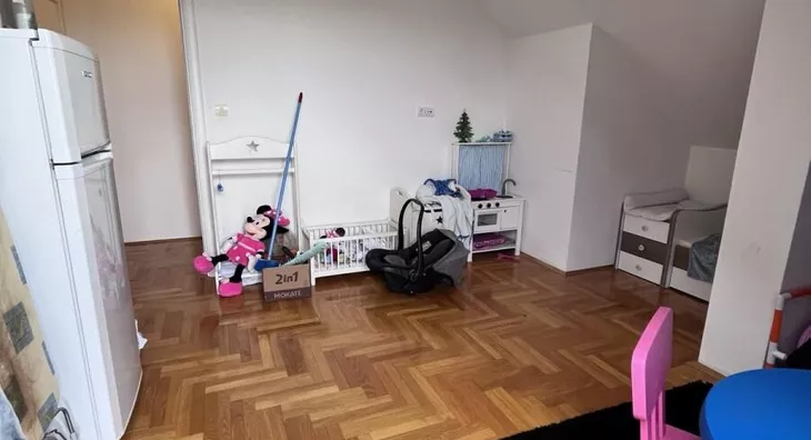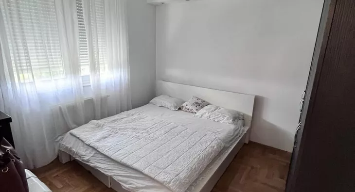 - Opremljenost: Namešteno - TV, klima, veš mašina, kuhinjski elementi, frižider, zamrzivač, šporet, rerna, ležaj, plakar, ugradni plakar