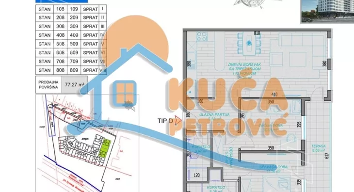 Na prodaju useljiv stan u novogradnji, na jednoj od najatraktivnijih lokacija u gradu na Bulevaru Nemanjića, u stambeno poslovnom objektu PO1+PO2+P+8. Projektovana površina stana je 77.27m2. Po strukturi stan je trosoban sa funkcionalnim rasporedom prostorija. Sastoji se od ulaznog hodnika koji vodi do svih prostorija u stanu, dnevne sobe sa trpezarijom i kuhinjom koja ima izlaz na terasu, spavaće sobe, dečije sobe i dva kupatila. Zgrada je rađena po visokim standardima, spoljna izolacija je 10cm, a unutrašnja 5cm kamene vune. Na podovima se postavlja tarket parket I klase i keramika visokog kvaliteta, PVC šestokomorna stolarija sa aluminijumskim roletnama, grejanje je centralno povezano na Toplanu. Zgrada ima dva bešumna lifta koja idu do podzemnog dela gde se nalaze parking mesta. Bezbednost stanovanja omogućiće video nadzor i interfon. Zgrada se pravi najsavremenijim materijalima i tehnikama gradnje. Stanovi su projektovani da budu komforni, osvetljeni funkcionalni i prijatni za porodičan život. Za kupovinu prvog stana mogućnost povraćaja PDV-a. Za više informacija slobodno nas kontaktirajte.