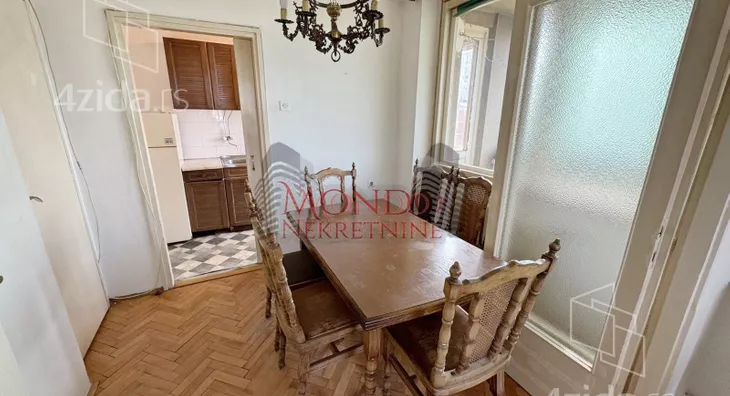 Stan se nalazi u stambenoj zgradi na X-spratu sa dva lifta, povrsine od 76m2 (grejne 70m2). Na podu je parket, stolarija je drvena, stan je u izvornom stanju.