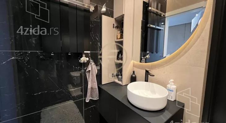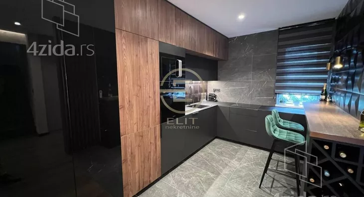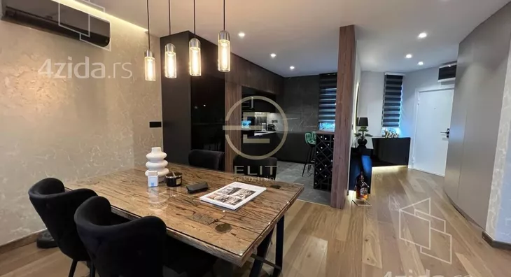 Stan je kompletno renoviran sa pažnjom na svaki detalj – korišćeni su najkvalitetniji materijali i nameštaj po meri, što dodatno ističe njegovu ekskluzivnost.