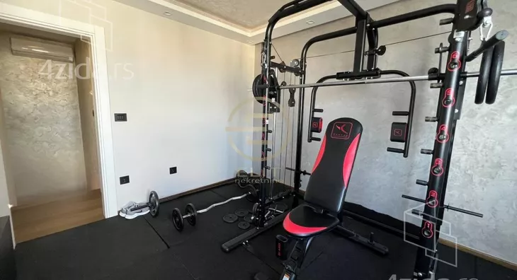 Na drugoj etaži nalaze se dve dodatne spavaće sobe, od kojih je jedna trenutno opremljena kao privatna teretana, dok se između njih nalazi prostrano i luksuzno kupatilo.