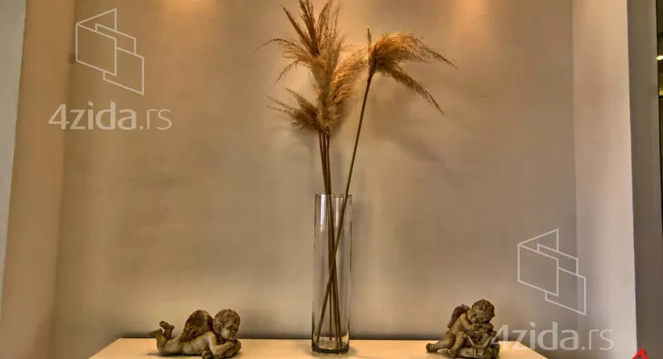 Trpezarija: ukrasni zid od lomljenog belog mermera
