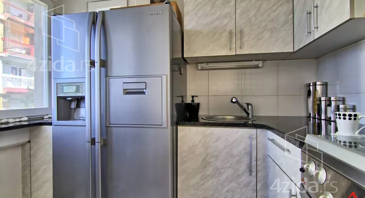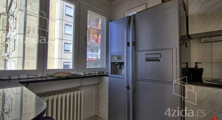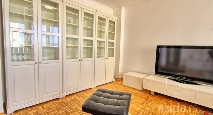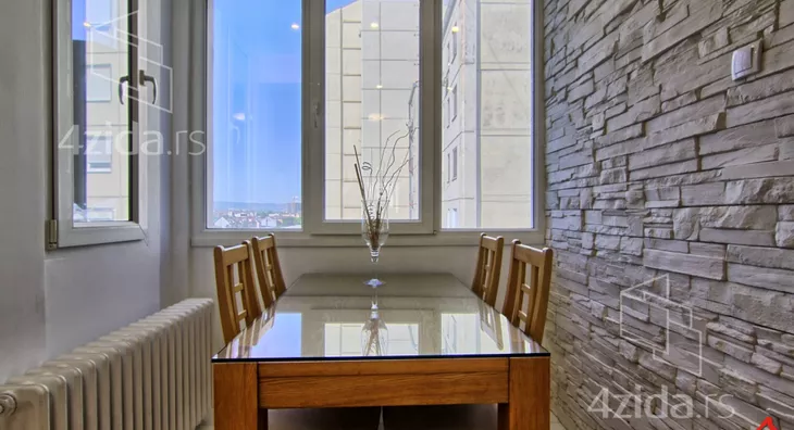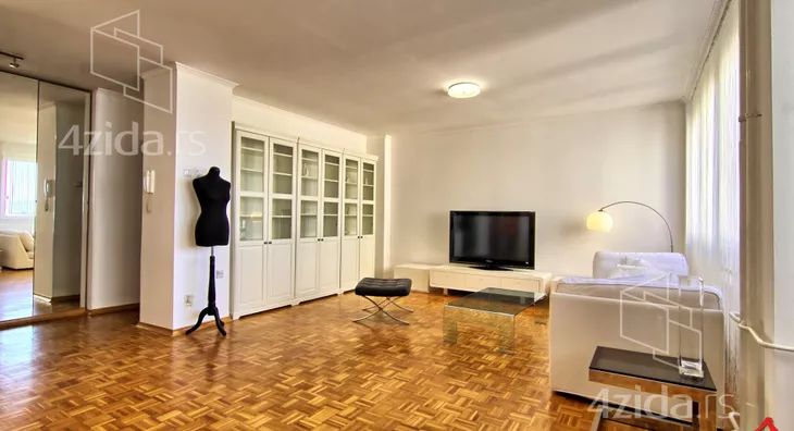 For sale: Spacious, fully renovated, luxury one-bedroom apartment in a prime location – Bulevar Oslobođenja, Novi Sad. Situated on the 7th floor with elevator, set back from the boulevard, ensuring peace and quiet.