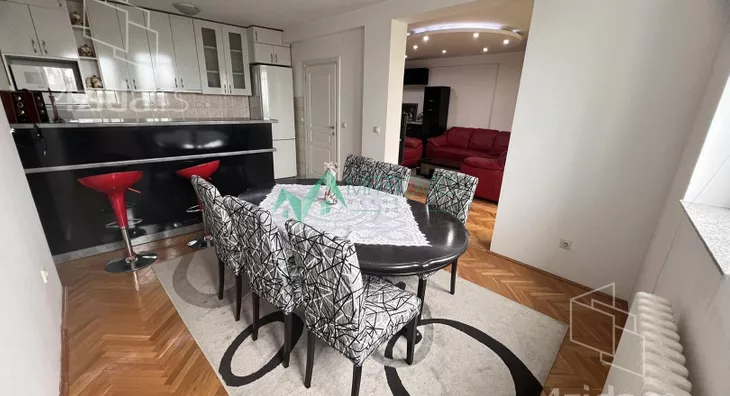 Namešten trosoban stan idealan za porodično stanovanje. Iz hodnika se ulazi u sve prostorije. Stan sadrži prostorije sledećeg rasporeda: prostran dnevni boravak sa izdvojenom kuhinjom i trpezarijom, dve spavaće sobe, dva kupatila(jedno sa kadom, drugo sa tuš kabinom), dve terase od kojih je jedna zatvorena i dve ostave. Izlaz na jednu terasu je iz dnevne sobe, izlaz na drugu terasu iz obe spavaće sobe. Stan se prodaje kompletno namešten. U stanu su uradjeni spušteni plafoni i halogenska rasveta. Nalazi na V spratu zgrade sa dva lifta. Pozicija zgrade na vrlo atraktivnom mestu za porodično stanovanje. Kontakt 069... (prikaži broj telefona)