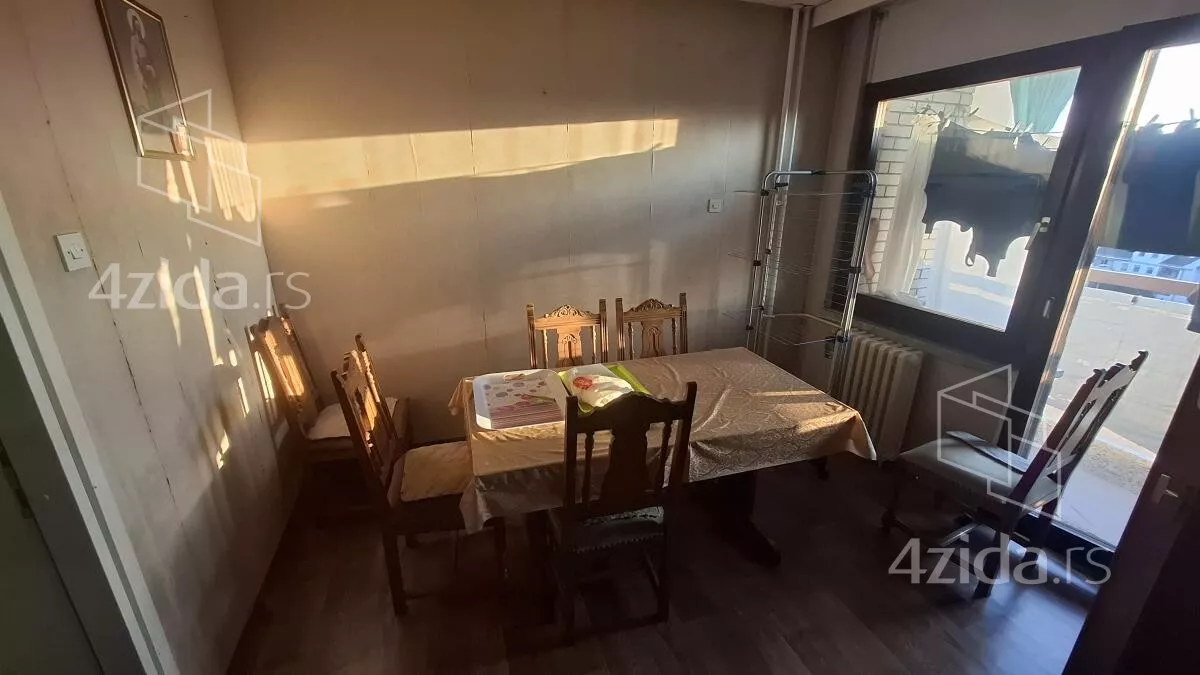 062... (prikaži broj telefona) Prodajemo Trosoban stan na Bulevaru oslobođenja,drugi red,zgrada bele fasadne cigle,pogled na Frušku goru . . . VIII sprat,nije poslednji,stan ima odvojenu kuhinju sa ostavom,trpezariju, dnevni boravak,dve spavaće sobe,predsoblje,kupatilo, WC, lođu i terasu koje nisu ušle u kvadraturu.U sve prostorije se ulazi iz predsoblja. Zgrada je održavana,ima dva lifta,oko zgrade dosta parkinga i zelenila,obdanište pored zgrade.Stan je uknjižen,moguća i zamena za manji stan + doplata.