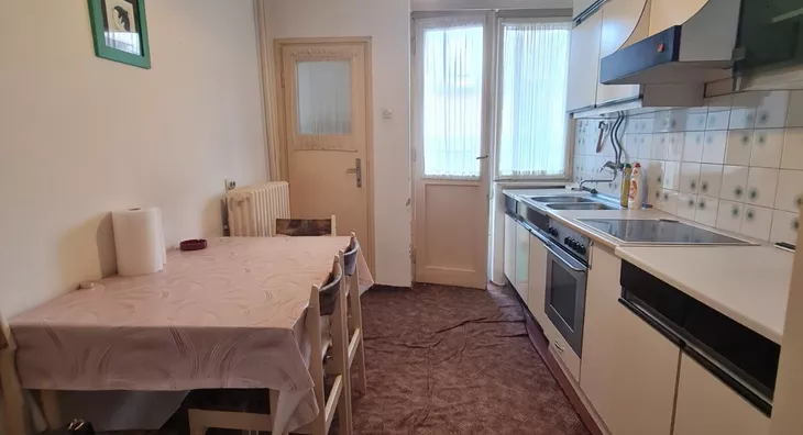 The apartment is situated on the high ground floor of a well-maintained residential building and has dual orientation, ensuring peace, privacy, and plenty of natural light. The layout is functional and spacious — three large rooms, a separate kitchen with dining area and warm storage, a terrace, and a bathroom.