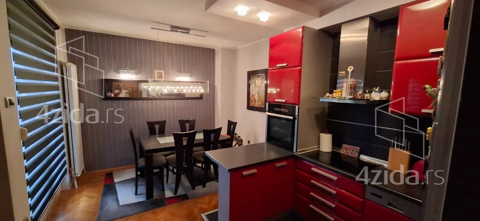 Na prodaju dupleks sa dve spavaće sobe, luksuzno opremljen, svaki deo nameštaja urađen po meri u ukusu. Stan se nalazi u blizini futoške pijace, u mirnoj i manje prometnoj ulici, punoj zelenila. Sve što je potrebno za obavljanje svakodnevnice nalazi se na manje od 20 metara od ulaza zgrade, marketi, ugostiteljski objekti, frizerski saloni ...