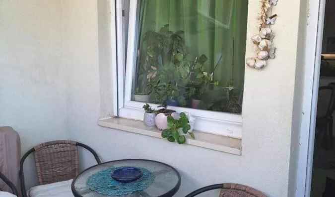 Stan se sastoji se od ulaznog hodnika, dnevnog boravka sa kuhinjom, prostrane terase (sa tendom) kupatila i dve spavaće sobe.