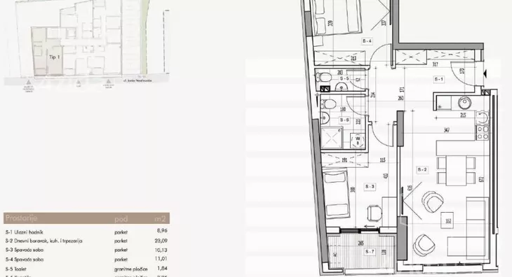 U ponudi je moderno dizajnirana novogradnja na odličnoj lokaciji kod Čaira, zgrada je spratnosti P+8 sa liftom. Prodaje se dvoiposoban stan površine 62,41m2, sastoji se iz ulaznog hodnika, dnevnog boravka sa kuhinjom i trpezarijom, dve spavaće sobe, kupatila i terase. Stanovi su projektovatni tako da kupcima pružaju ugodnost i udobnost. U gradnji se koriste najkvalitetniji materijali: fasada je izvedena u višeslojnom sistemu sa zidovima od energetskog bloka debljine 25 cm i završnom obradom tipa „Demit“, kao termika u sistemu koristi kamena vuna u debljini od 10 cm, unutrašnja stolarija, sobna vrata, izrađena od visokokvalitetnog furnira kao završnice sa tvrdom ispunom (iverica), spoljna stolarija je od aluminijum, podovi su izvedeni kao plivajući sa ugrađenom zvučnom izolacijom, biće postavljen višeslojni parket, u kupatilu i na terasi biće postavljena granitna keramika, odovi garaže: završna obrada od ferobetona, sanitarija i galanterija: usponski tuš, linijski slivnik, ugradni geberit, klonzolna WC šolja, stakleni paravan, lavabo sa ormarićem - konzolni. Projektovano je ukupno 36 parking mesta, uključujući: podzemnu garažu sa 18 parking mesta, kojoj se pristupa rampom i i 18 parking mesta na otvorenom delu dvorišta. U cenu je uključen PDV i kupci prvog stana imaju pravo na povraćaj PDV-a u iznosu od 10%.Za više informacija o ovoj ili drugim nekretninama i zakazivanje razgledanja kontaktirajte agenta na broj telefona iz oglasa (poziv, sms, viber) ili putem e-maila. Kompletnu ponudu dostupnih nekretnina možete pronaći na našem sajtu. Agencija Proagent nekretnine je upisana u Registru posrednika pod brojem: 940.