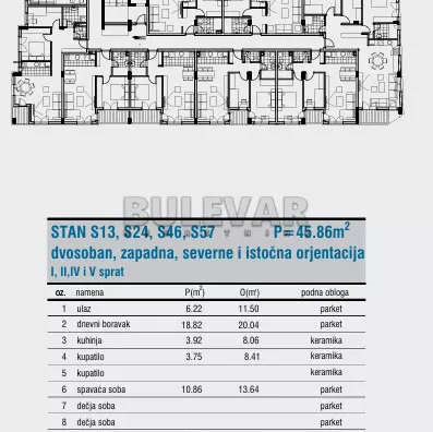 U neposrednoj blizini fakulteta, u mirnom i centralnom delu grada, nalazi se stambeni objekat projektovan da obezbedi maksimalnu udobnost i kvalitet stanovanja. Stan se nalazi na petom spratu modernog stambenog objekta sa liftom. Orijentacija stana je severna. Sturuktura je dvosobna. Stan se sastoji od ulaznog hodnika, kupatila, spavaće sobe, i prostranog višenameskog prosotra gde je dnevna soba kuhinja, trepezarija i izlaz na terasu. Stolarija je sa sedmokomornim PVC profilima i troslojnim staklom, roletne sa električnim podizačima, etažno grejanje i inverter klima uređaji, na podu je parket prve klase, granitne tuš kade, svaki stan ima sopstveni vodomer. Rok završetka je oktobar 2026g. Za kupce prve nekretnine moguć je povrat PDV-a. Moguća kupovina putem stambenog kredita.
