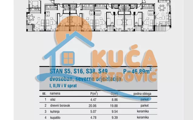 U neposrednoj blizini fakulteta, u mirnom i centralnom delu grada, nalazi se stambeni objekat projektovan da obezbedi maksimalnu udobnost i kvalitet stanovanja. Stan se nalazi na petom spratu modernog stambenog objekta sa liftom. Orijentacija stana je severna. Sturuktura je dvosobna. Stan se sastoji od ulazng hodnika, kupatila, spavaće sobe, i prostranog višenameskog prosotra gde je dnevna soba kuhinja, trepezarija i izlaz na terasu. Stolarija je sa sedmokomornim PVC profilima i troslojnim staklom, roletne sa električnim podizačima, etažno grejanje i inverter klima uređaji, na podu je parket prve klase, granitne tuš kade, svaki stan ima sopstveni vodomer. Rok završetka je oktobar 2026g. Za kupce prve nekretnine moguć je povrat PDV-a. Moguća kupovina putem stambenog kredita.