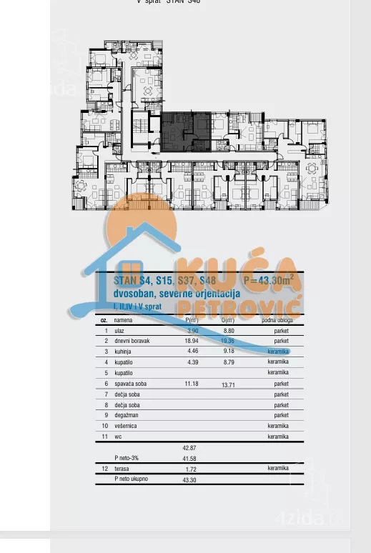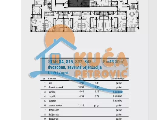 U neposrednoj blizini fakulteta, u mirnom i centralnom delu grada, nalazi se stambeni objekat projektovan da obezbedi maksimalnu udobnost i kvalitet stanovanja. Stan se nalazi na petom spratu modernog stambenog objekta sa liftom. Orijentacija stana je severna. Sturuktura je dvosobna. Stan se sastoji od ulaznog hodnika, kupatila, spavaće sobe, i prostranog višenameskog prostora gde je dnevna soba, kuhinja, trepezarija i izlaz na terasu. Stolarija je sa sedmokomornim PVC profilima i troslojnim staklom, roletne sa električnim podizačima, etažno grejanje i inverter klima uređaji, na podu je parket prve klase, granitne tuš kade, svaki stan ima sopstveni vodomer. Rok završetka je oktobar 2026g. Za kupce prve nekretnine moguć je povrat PDV-a. Moguća kupovina putem stambenog kredita.