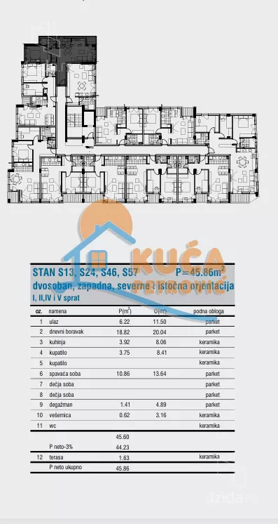 - Prostorije: kupatilo, terasa