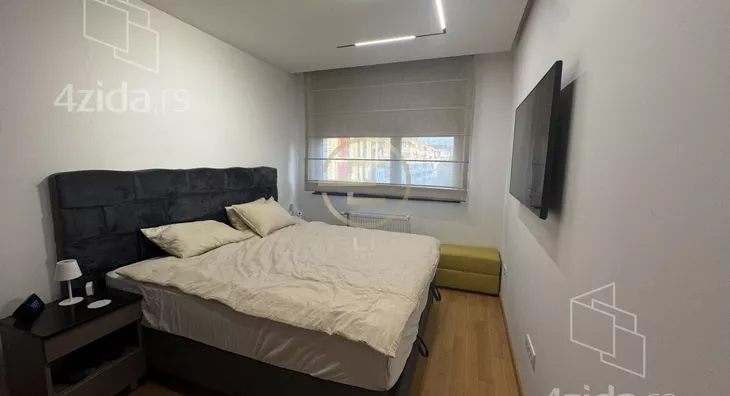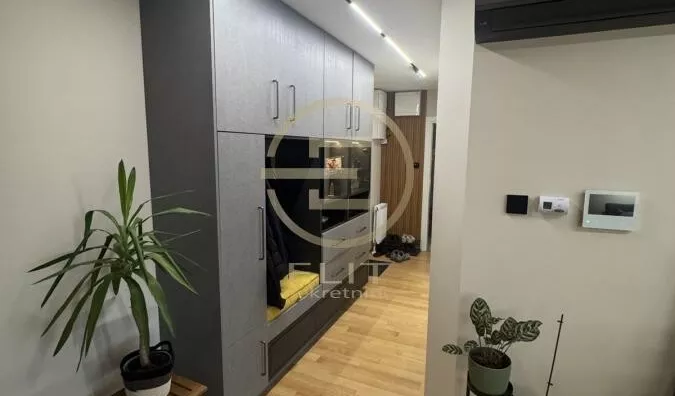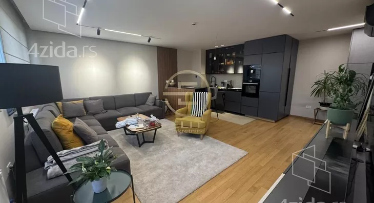 Opremljen je smart home sistemom, ugradnom kuhinjom sa kvarcnim radnim pločama, plakarima po meri, spuštenim plafonima sa modularnim trakastim LED osvetljenjem, klima uređajem jačine 24, kao i električnim podizačima roletni. Stan je rađen sa fokusom na komfor, estetiku i energetsku efikasnost, i ne zahteva dodatna ulaganja.