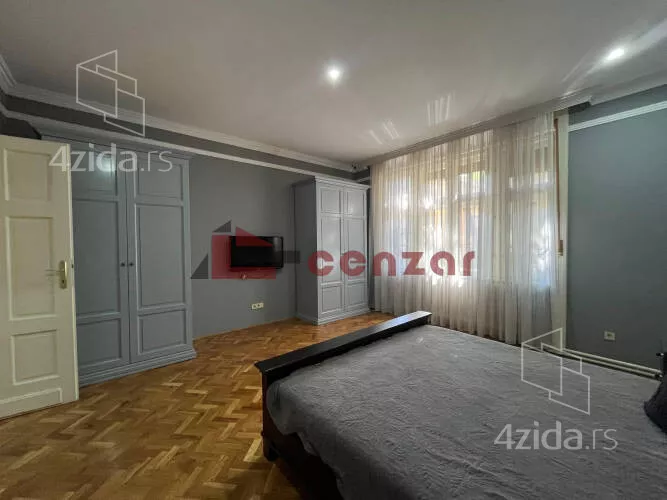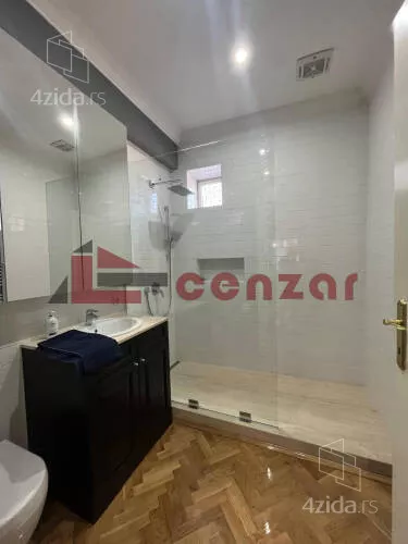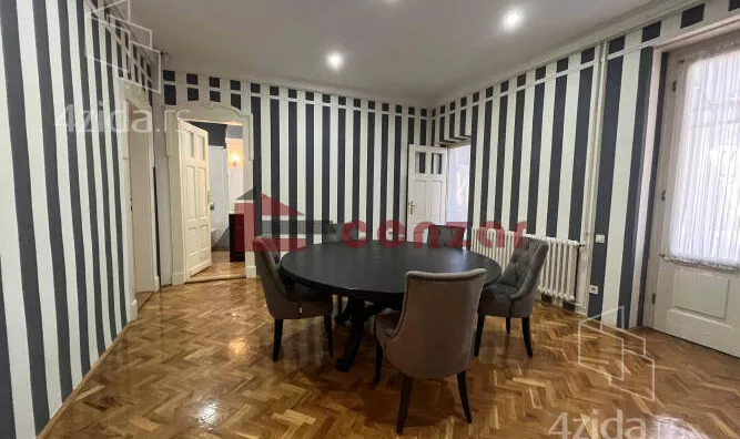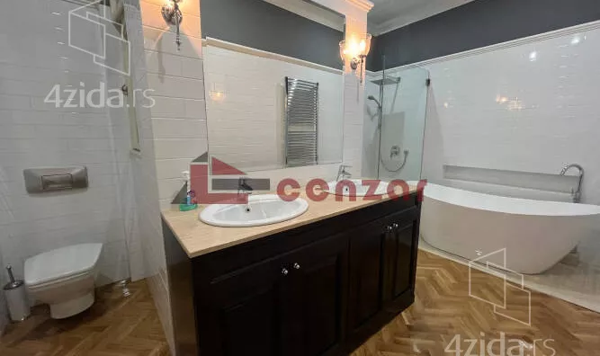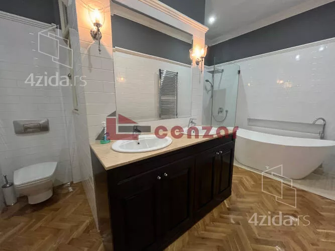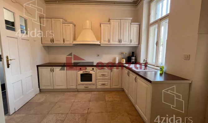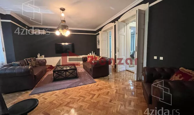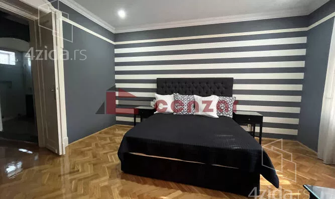 Stan sa visokim plafonima,originalnom stolarijom i očuvanim detaljima iz perioda u kojem je građen a kompletno renoviran uz korišćenje najkvalitetnijih materijala.Prostran dnevni boravak povezan sa ostatkom stana.Odvojena spavaća soba sa svojim kupatilom koje je moderno uređeno sa tuš kabinom i kvalitetnom sanitarijom druga soba pogodna kao gostinjska ili dečija soba.Kuhinja moderno opremljena sa direktinm izlaskom na terasu.Na podovima se nalazi hrastov parket,stolarija drvena,grejanje etažno na struju.Nalazi se na prvom spratu u centru grada.Prodaje se zajedno sa nameštajem i odmah je useljiv.