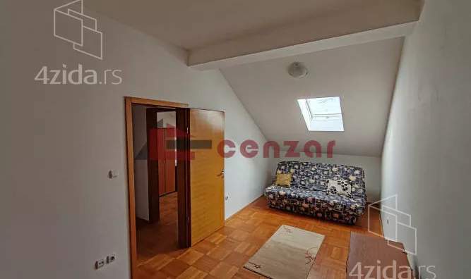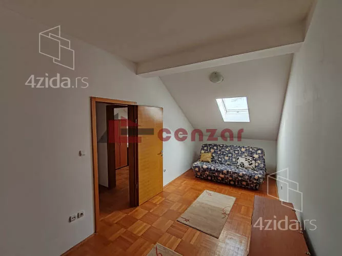 Prodaje se lep stan u strogom centru grada odličnog rasporeda prostorija, na četvrtom spratu u zgradi bez lifta, površine 98 m2. U svom sastavu ima predsoblje Iz kojeg se ulazi u kuhinju, toalet i veliku dnevnu sobu kao i posebni deo stana gde su smeštene 2 spavaće sobe i kupatilo. Podovi su parket i pločice, stolarija je drvena. Grejanje je centralno. Zgrada je građena 2006. godine.