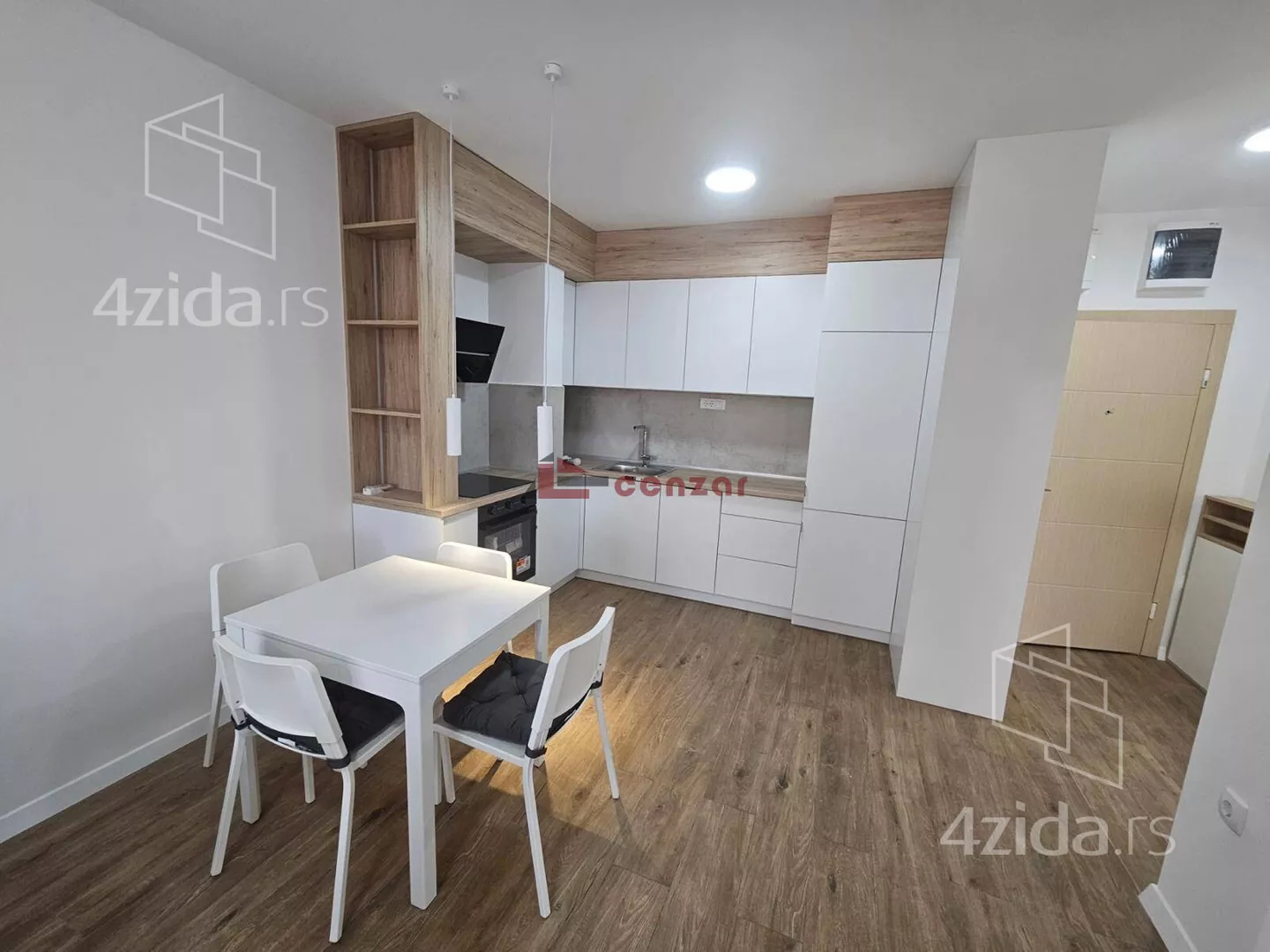 Stan novogradnja površine 45m2.Poseduje spavaću sobu,kupatilo,dnevni boravak sa kuhinjom koji ima izlaz na terasu.Na podovima se nalaze pločice sa podnim grejanjem na gas,stolarija pvc sa roletnama na daljinsko upravljanje.Nalazi se na trećem spratu uzgradi sa liftom i odmah je useljiv.