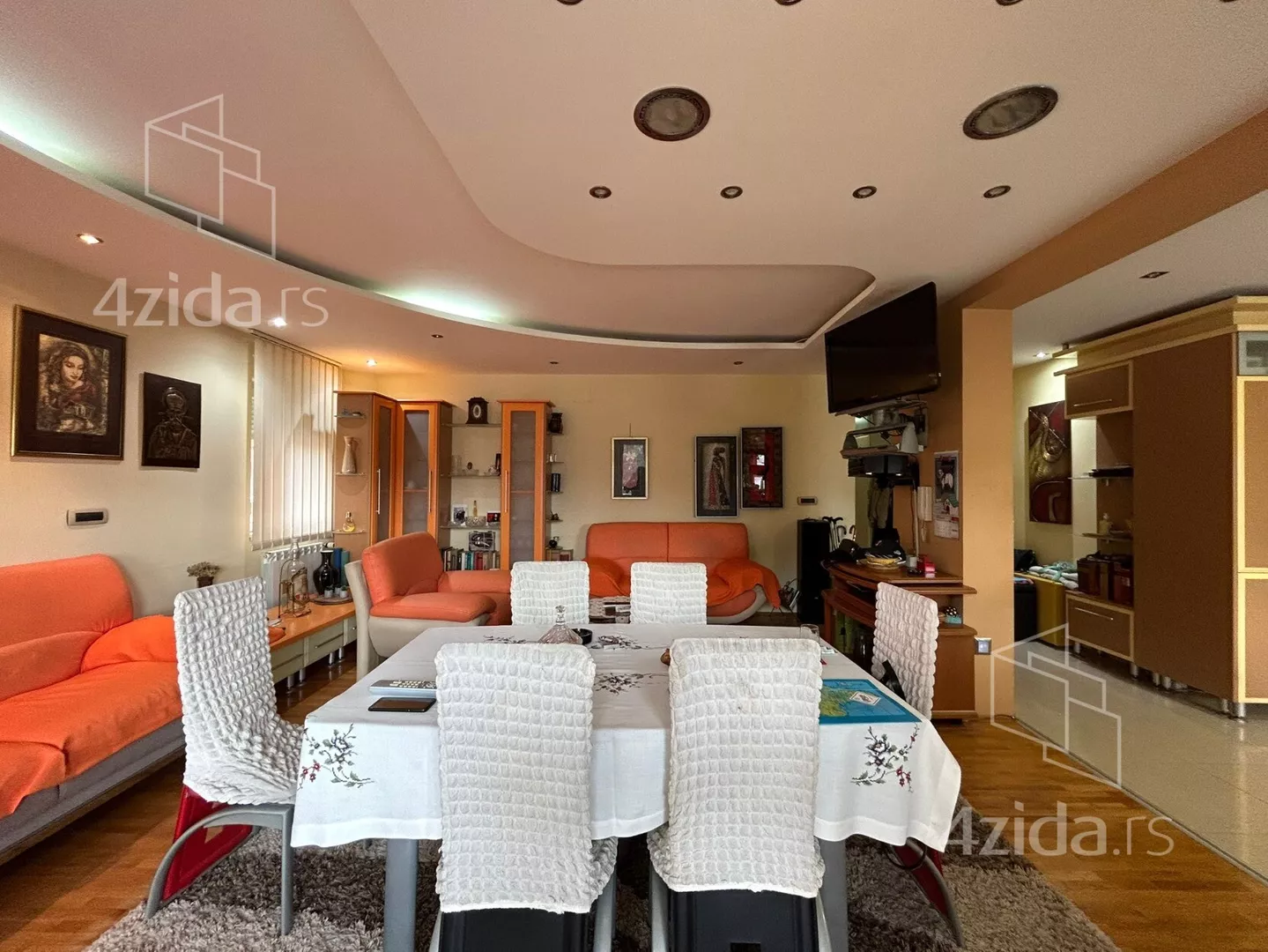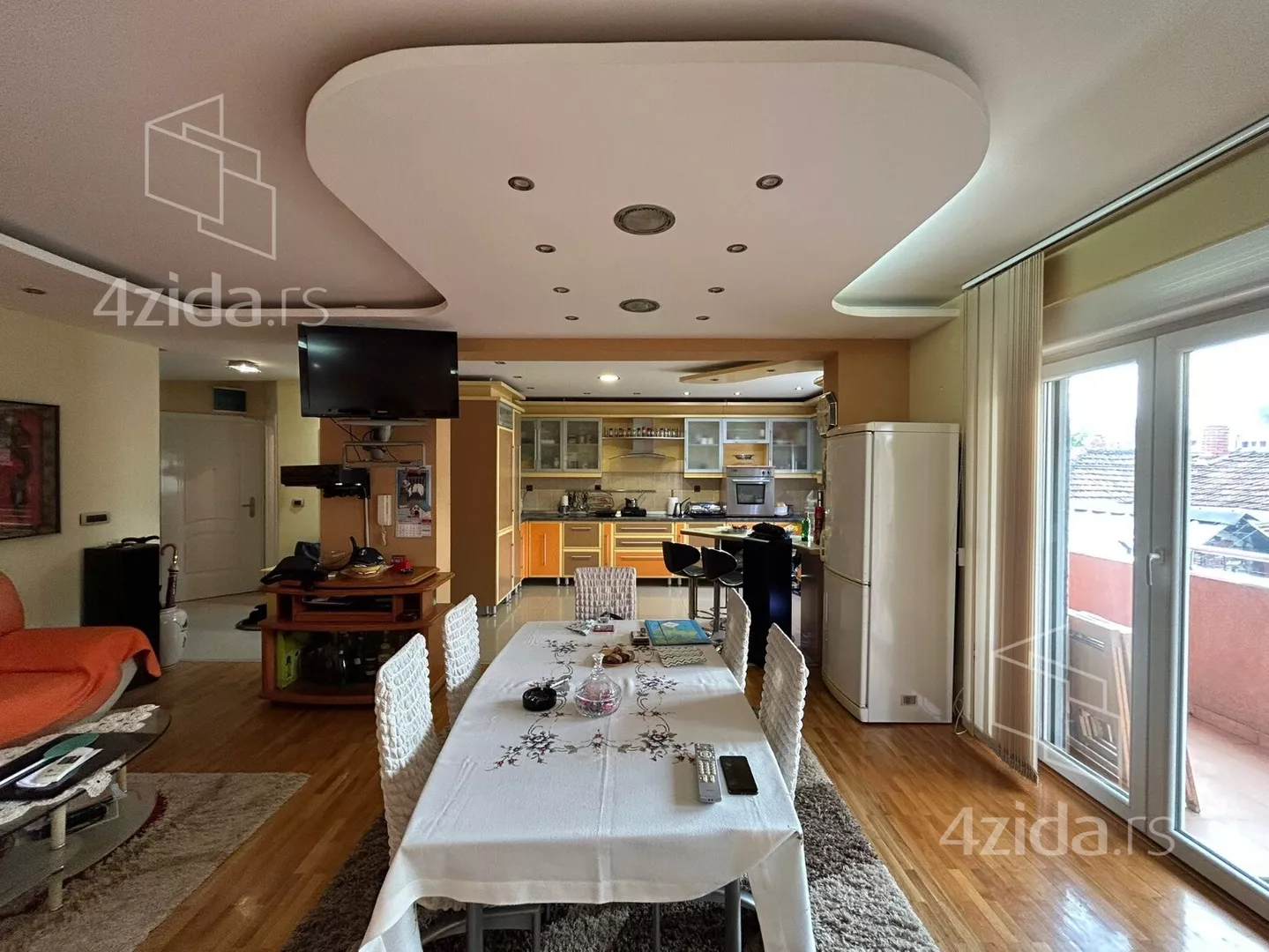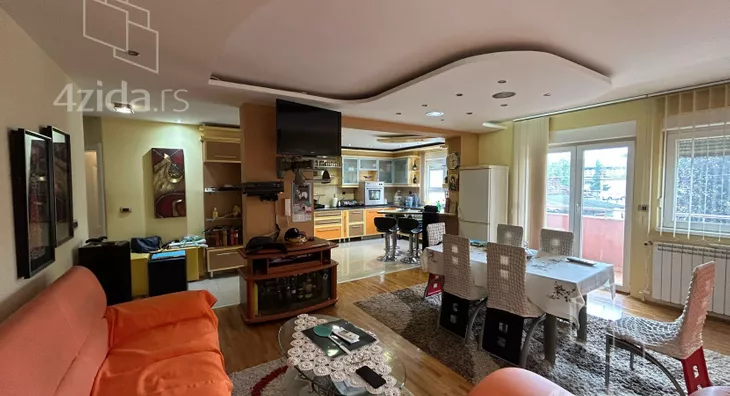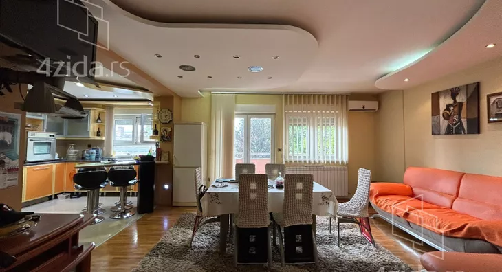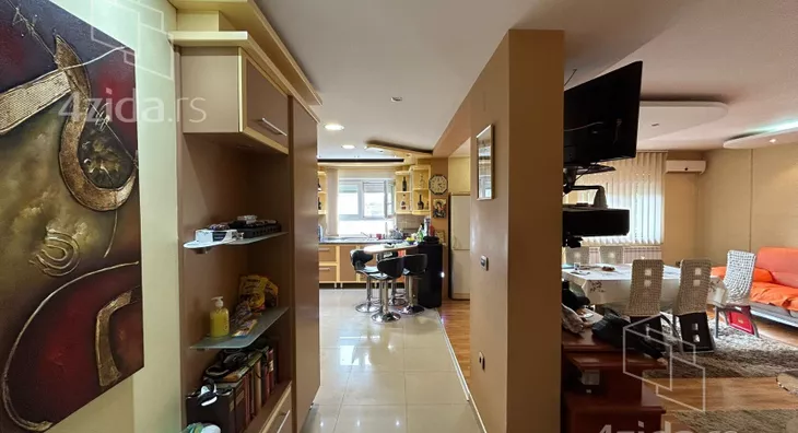 Stan poseduje hodnik, 3 spavace sobe, kupatilo, toalet, veliki dnevni boravak sa trpezarijom i kuhinjom i 2 terase. Stan poseduje i svoje parking mesto u dvoristu zgrade. Stan se prodaje kompletno namesten i ima podno grejanje i kalorimetar.