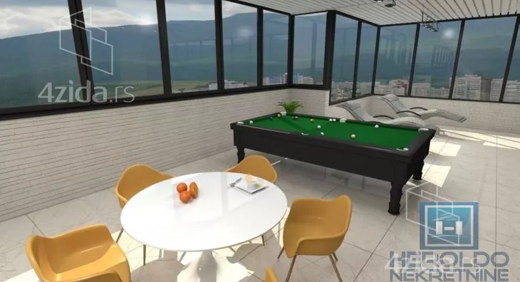 Ono što projekat čini jedinstvenim, pored zavidne lokacije, jeste KROVNA POVRŠINA OBJEKTA koja će biti iskorišćena za rekreativno zabavni sadržaj uz maksimizaciju zelenih površina i biće dostupna svim stanarima kompleksa. Krovna bašta biće idealna za večernja okupljanja, proslave rođendana i za organizovanje drugih zabavnih aktivnosti stanara.