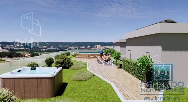 Krovna površina je planirana kao PROHODNA TERSA SA BAZENOM 20m2 KOJI ĆE BITI OKRUŽEN ZELENILOM I LEŽALJKAMA.