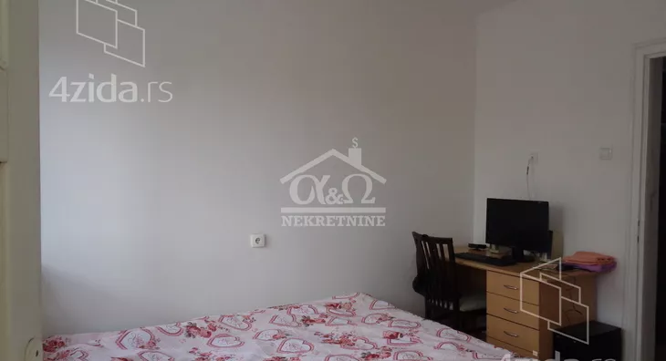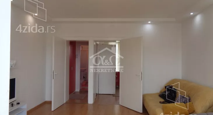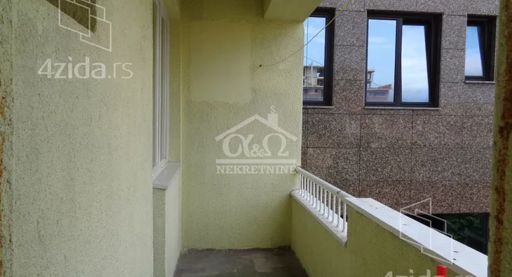 Renoviran dvosoban stan u najstrožem Centru, u blizini Opštine. Struktira: predsoblje, spavaća soba koja ima manju prostoriju za garderober i izlaz na terasu, trpezarija sa kuhinjom koja ima izlaz na istu terasu, dnevni boravak koji izlazi na drugu terasu, degažman i kupatilo. Stan je dvostrano orjentisan, komforan, svetao, izuzetnog rasporeda. Sa prostranih terasa (koje nisu uračunate i kvadraturu) se pruža lep pogled na Skupštinu grada i Trg slobode. Zbog izuzetne lokacije pogodan za porodični život ili kao investicija za rentiranje.