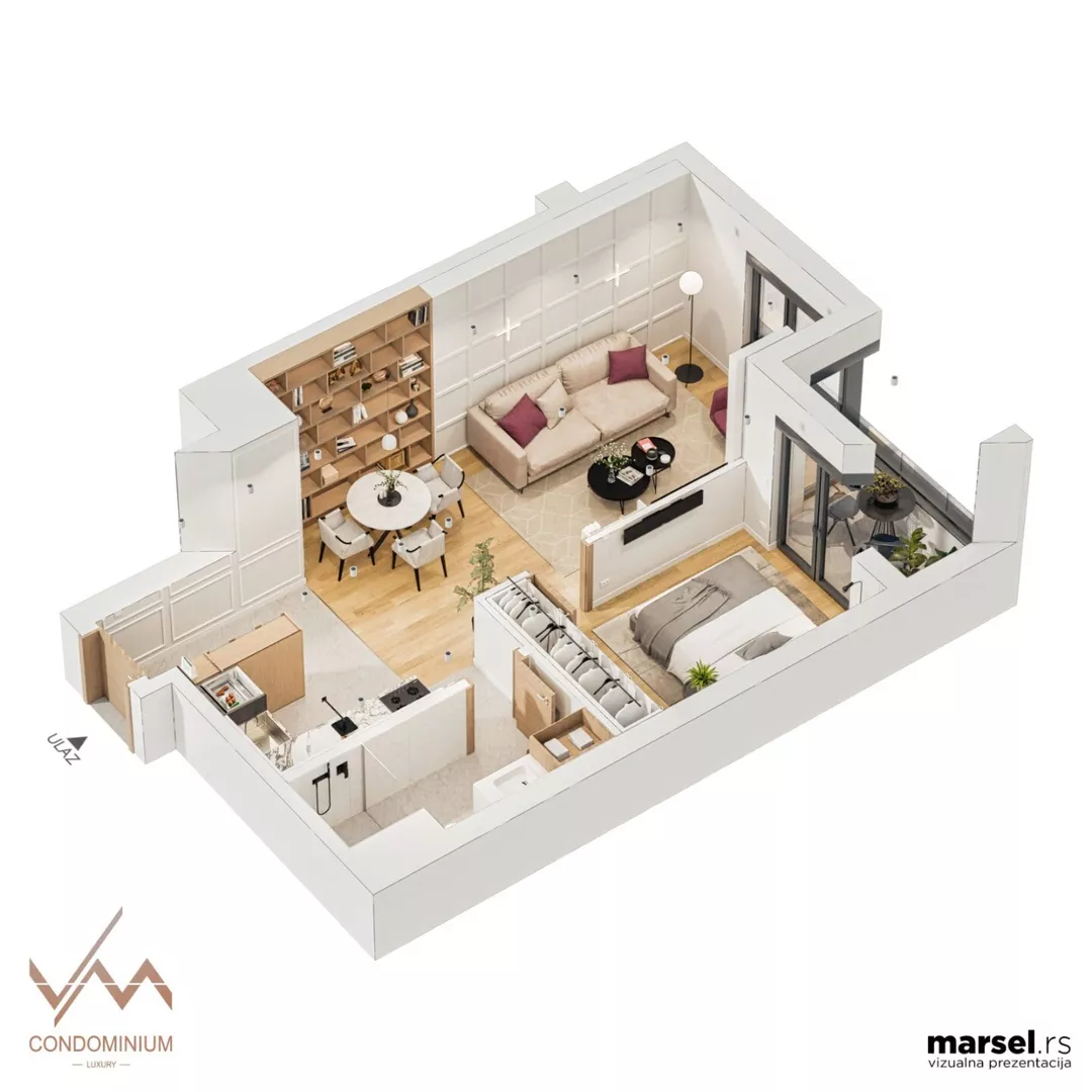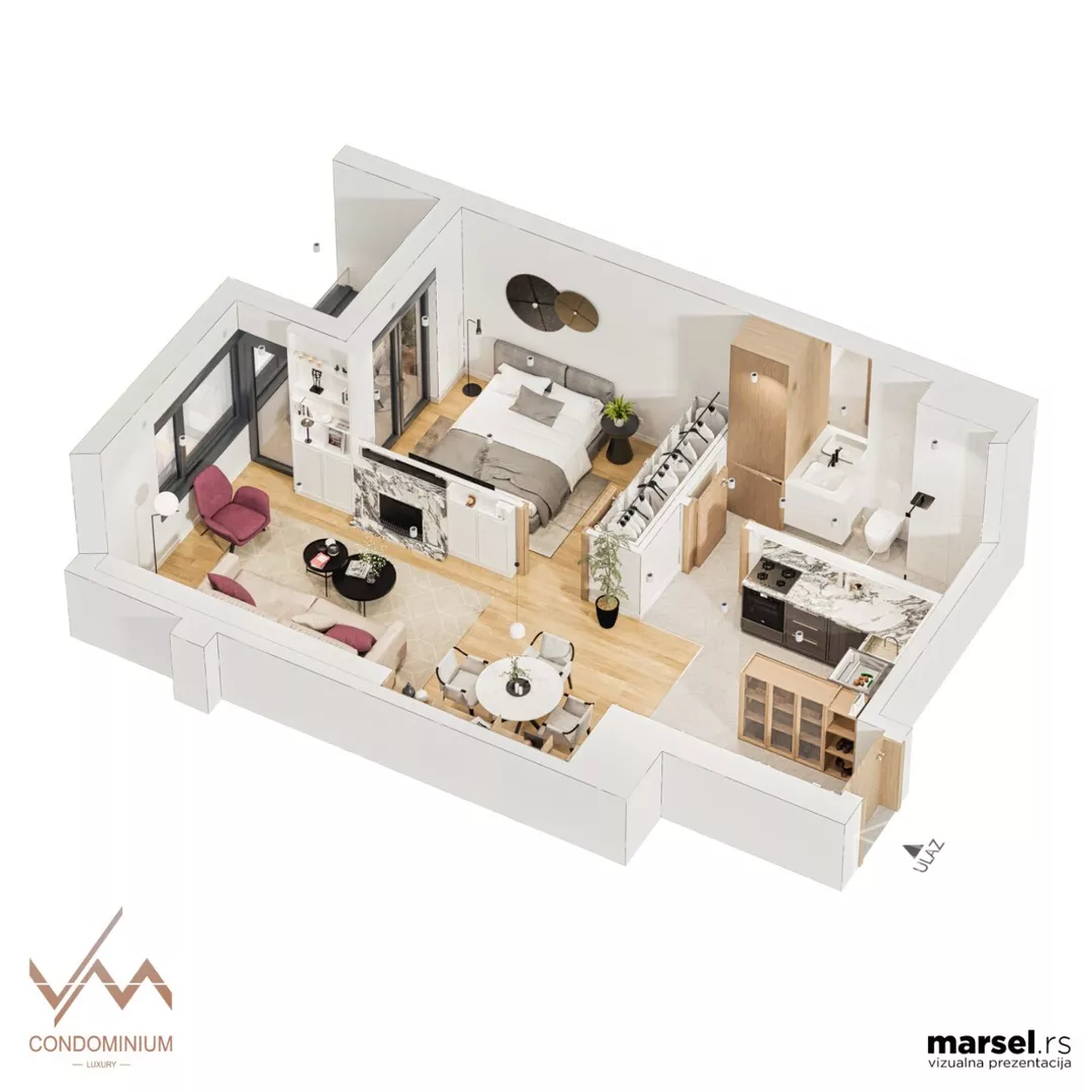 Prodaje se jednoiposoban stan od 55kv u VM kondominijumu na 1-om spratu...grejanje na GAS. Cena 121 000 + PDV.