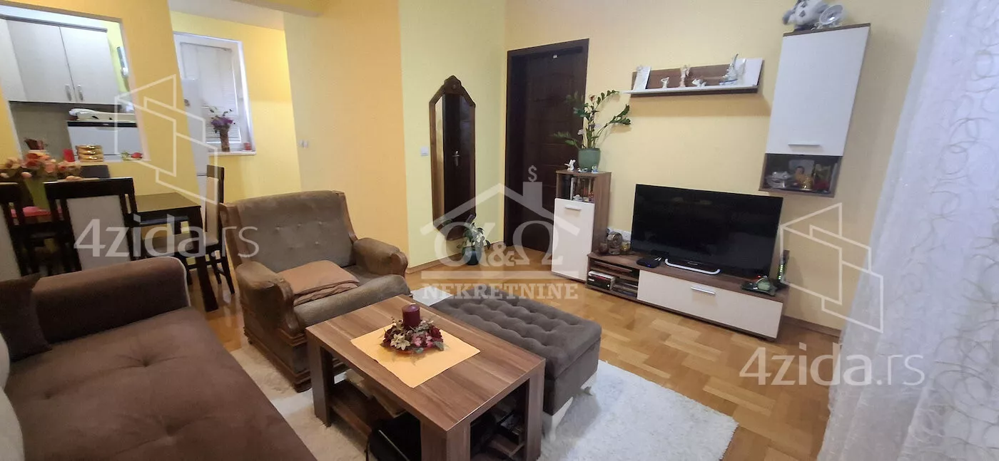 Na prodaju funkcionalan jednoiposoban stan sa terasom, na trećem spratu, u samom centru grada. Stan se sastoji od: dnevnog boravka sa trpezarijom, kuhinjom i izlazom na terasu, hodnika, spavaće sobe i kupatila. Stan je odličnog rasporeda, funkcionalan i svetao. Terasa iz dnevnog boravka – idealna za odmor i uživanje. Mirna i uredna zgrada, sa dobrom strukturom stanara. Stan se nalazi u blizini opštine, državnih i kulturnih institucija, marketa i svih sadržaja koji omogućavaju udoban i kvalitetan život u gradu. Odlična povezanost i dostupnost svih delova grada. Pogodan kako za život, tako i za stabilan prihod od izdavanja. Prednosti: Izuzetna lokacija u strogom centru, stan je odmah useljiv.