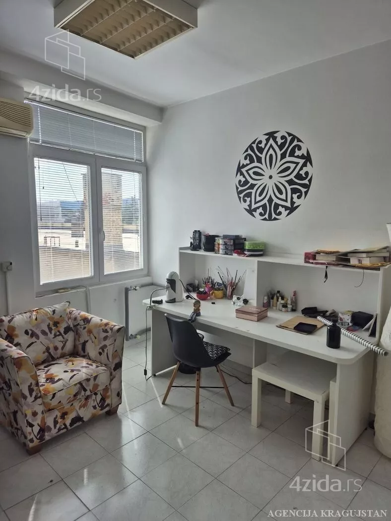 Prodaje se u centru grada, poslovni prostor - apartman od 24 kvm, na četvrtom spratu ( potkrovlje ), sa grejanjem na struju ( mogućnost za centralno grejanje koje je isključeno ), nema lifta u zgradi. Sastoji se od jedne prostorije i sanitarnog čvora. UKNJIŽENO ( upotrebna dozvola )