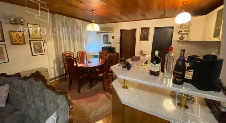 NEKRETNINE 96 prodaju dvoiposoban stan (po strukturi trosoban) ukupne površine 61m2 koji se nalazi na poslednjem petom spratu stambene zgrade u starogradnji (zgrada ne poseduje lift). Stan se sastoji od hodnika, dnevne sobe sa kuhinjom i trpezarijom, dve spavaće sobe i kupatila.