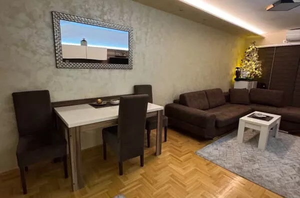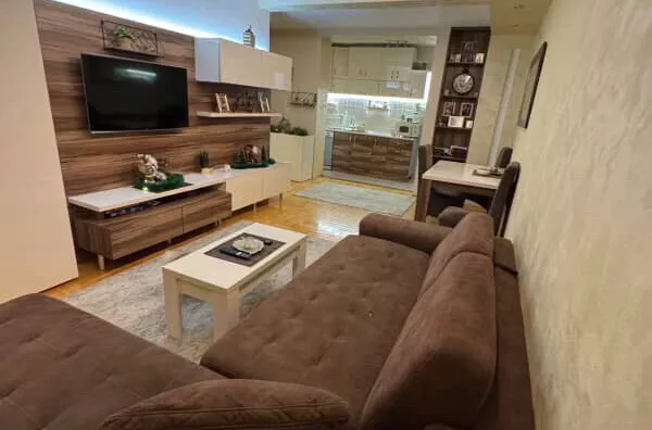 Agencija Novogradnja prodaje komforan trosoban stan površine 68m2 na drugom spratu stambene zgrade u strogom centru grada. Sastoji se od prostrane dnevne sobe sa trpezarijom , odvojene kuhinje, dve spavaće sobe, kupatila predsoblja i terase, priključen na centralno grejanje gradske toplane. Stan se prodaje sa celokupnim nameštajem . Cena stana iznosi 109.000 evra.