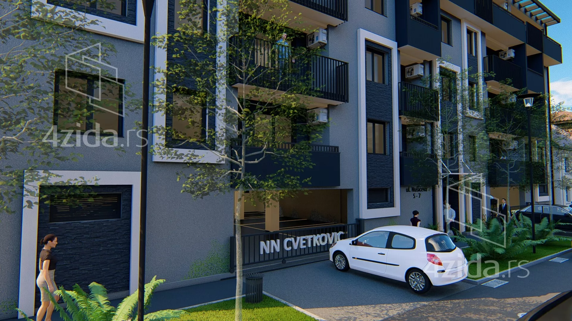 Stambeni kompleks se sastoji od 32 stana sa garažanim I parking mestima.