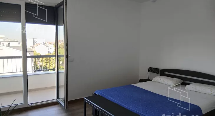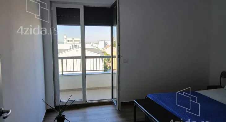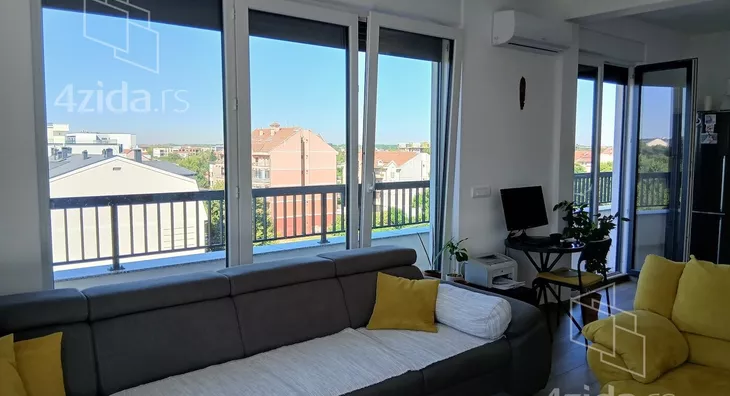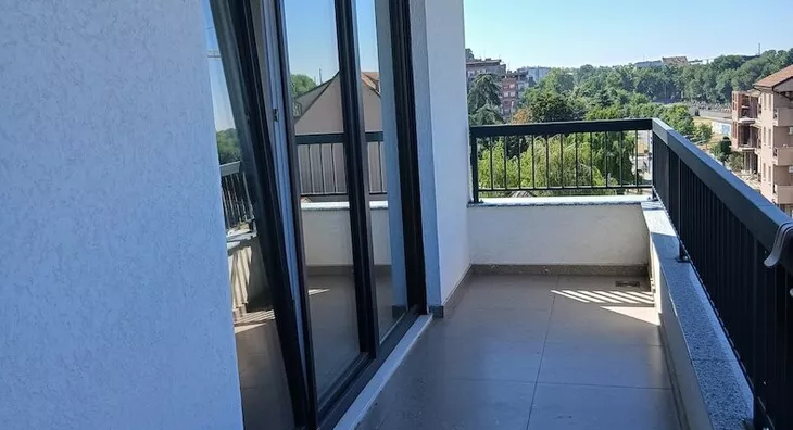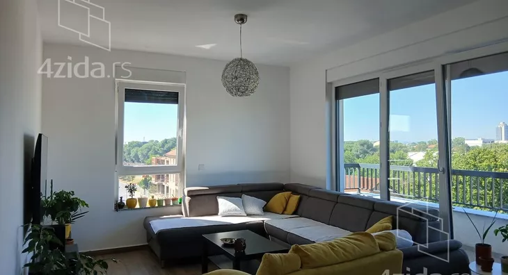 Prelep trosoban stan u novoj zgradi sa predivnim pogledom na grad. Sve sobe imaju izlaz na terasu, a velike staklene površine pružaju obilje svetlosti, tako da je ceo stan praktično okupan suncem.
