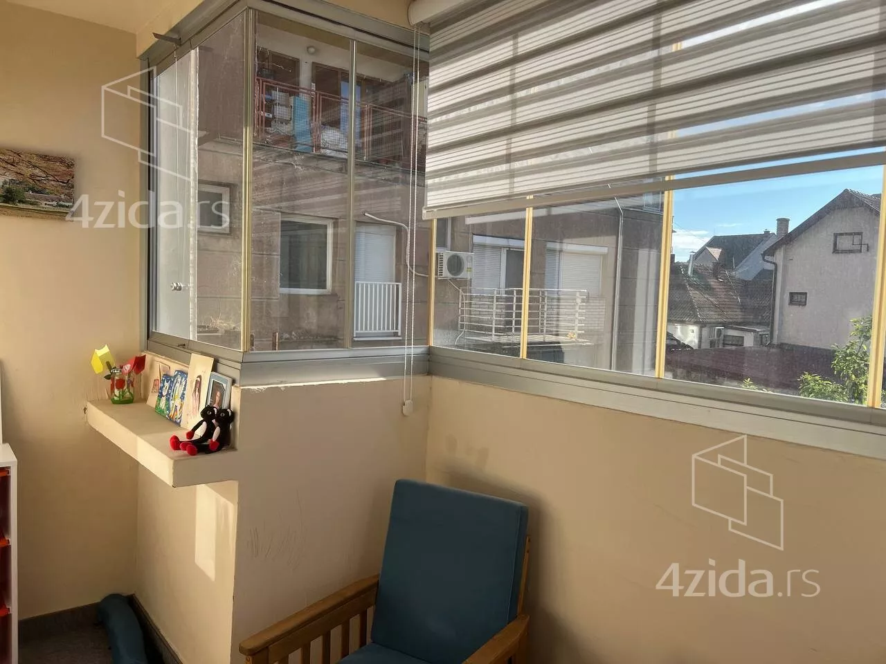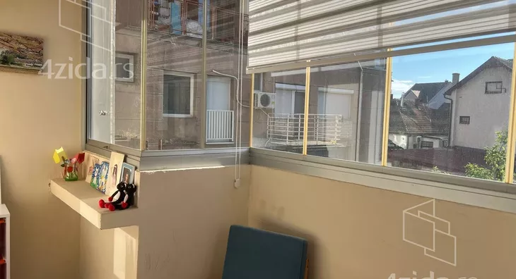 Polunamešten stan u samom centru grada, 80 m², potpuno renoviran — nova PVC stolarija, sigurnosna vrata, ostavljamo kuhinju i plakare. Jedna terasa zatvorena i renovirana, druga mala.