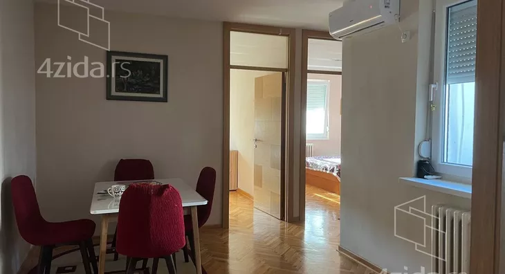 - Opremljenost: Polunamešteno - internet, klima, kuhinjski elementi, sudo mašina, šporet, rerna, ugradni plakar