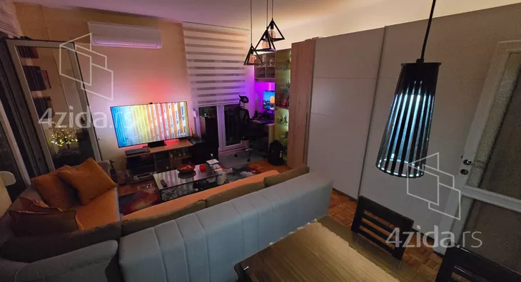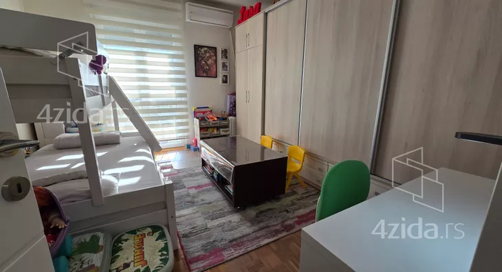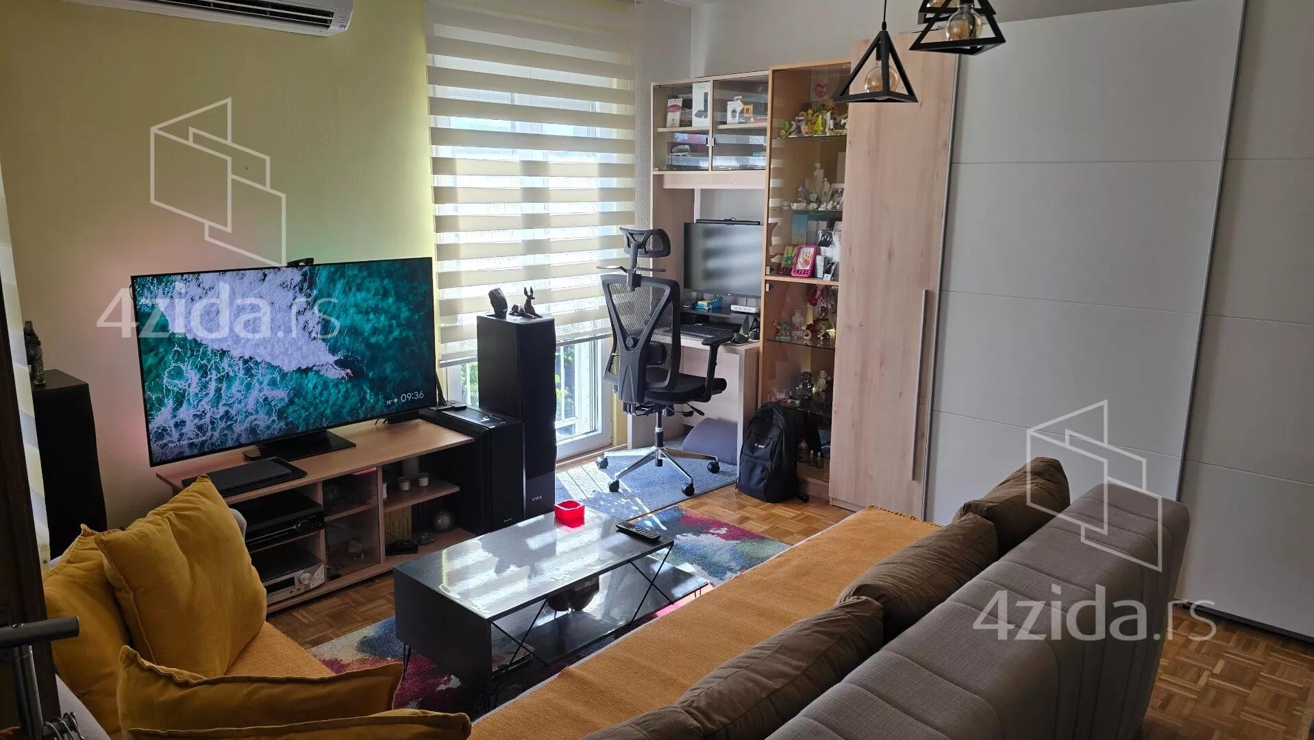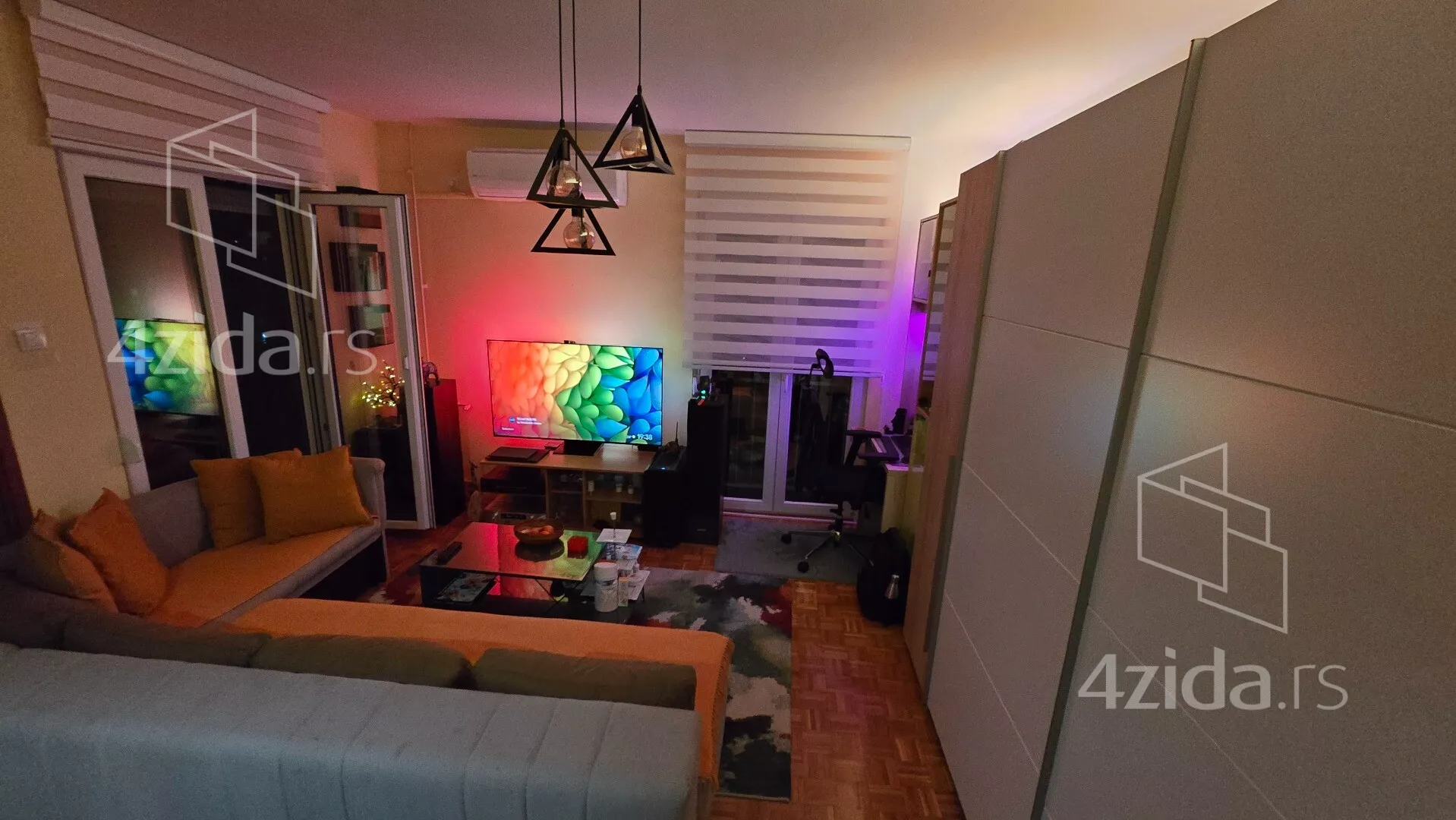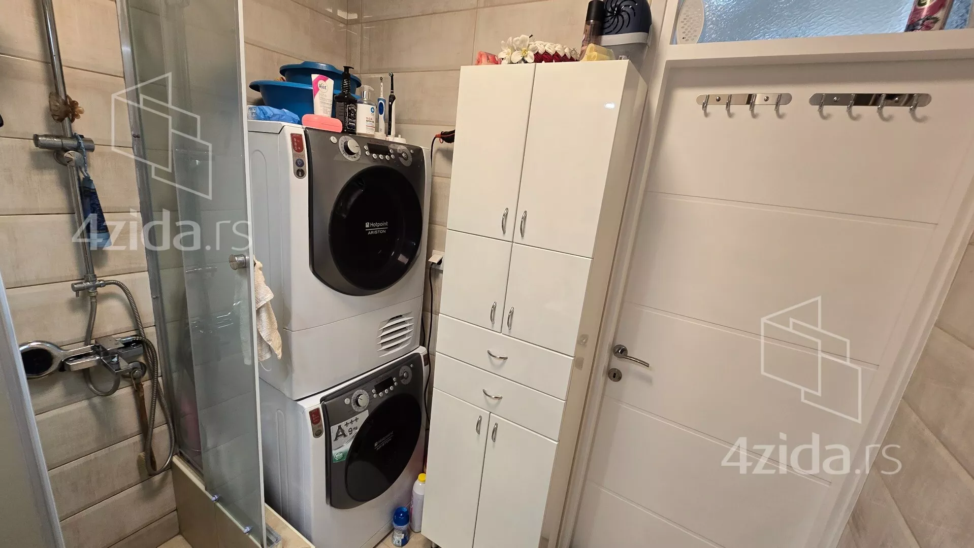 - Opremljenost: Namešteno - internet, TV, klima, veš mašina, kuhinjski elementi, sudo mašina, frižider, zamrzivač, šporet, rerna, ležaj, plakar, ugradni plakar, kancelarijski nameštaj