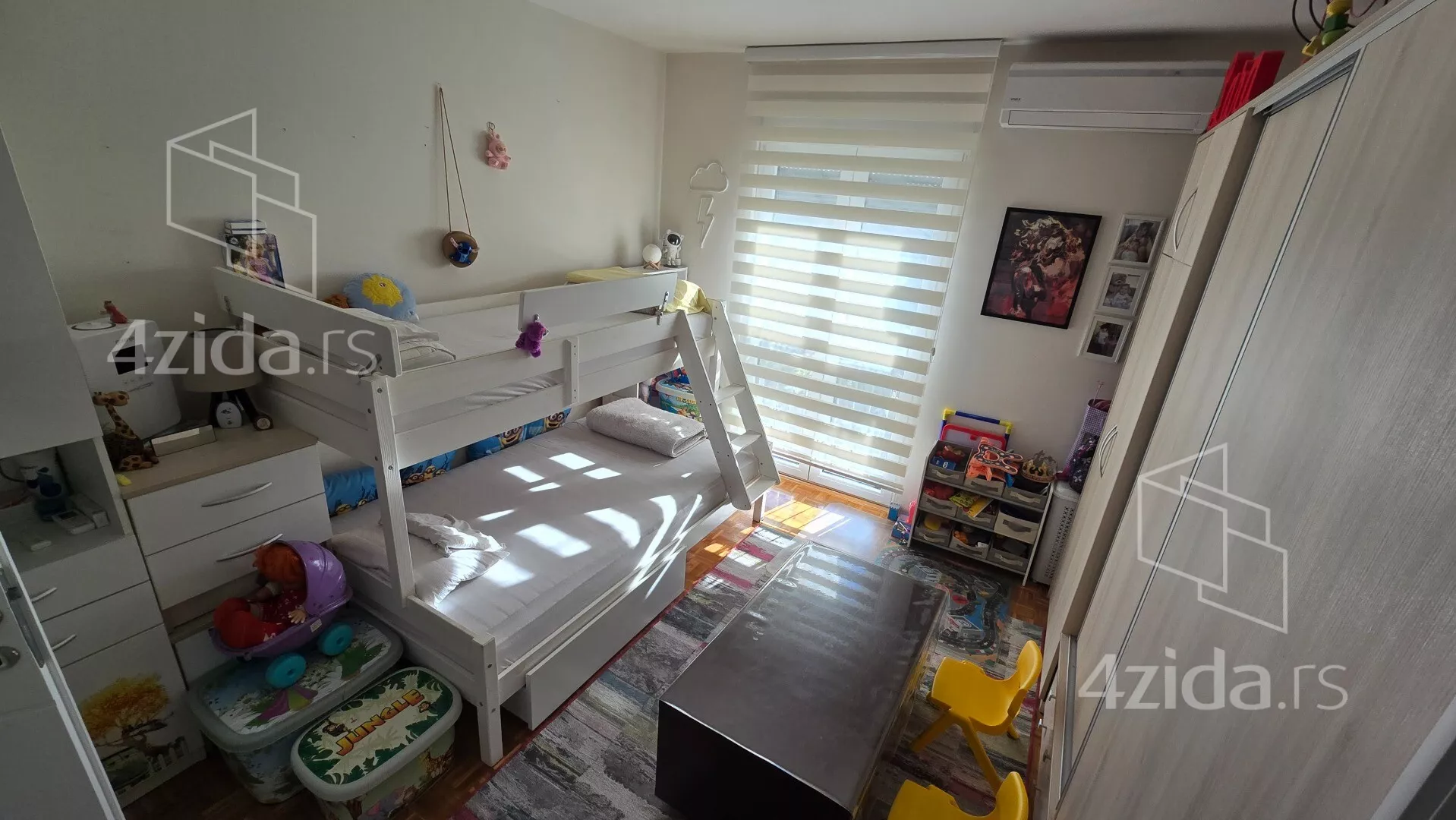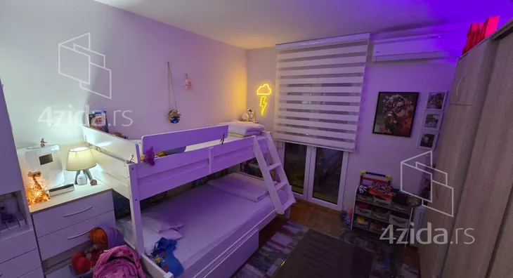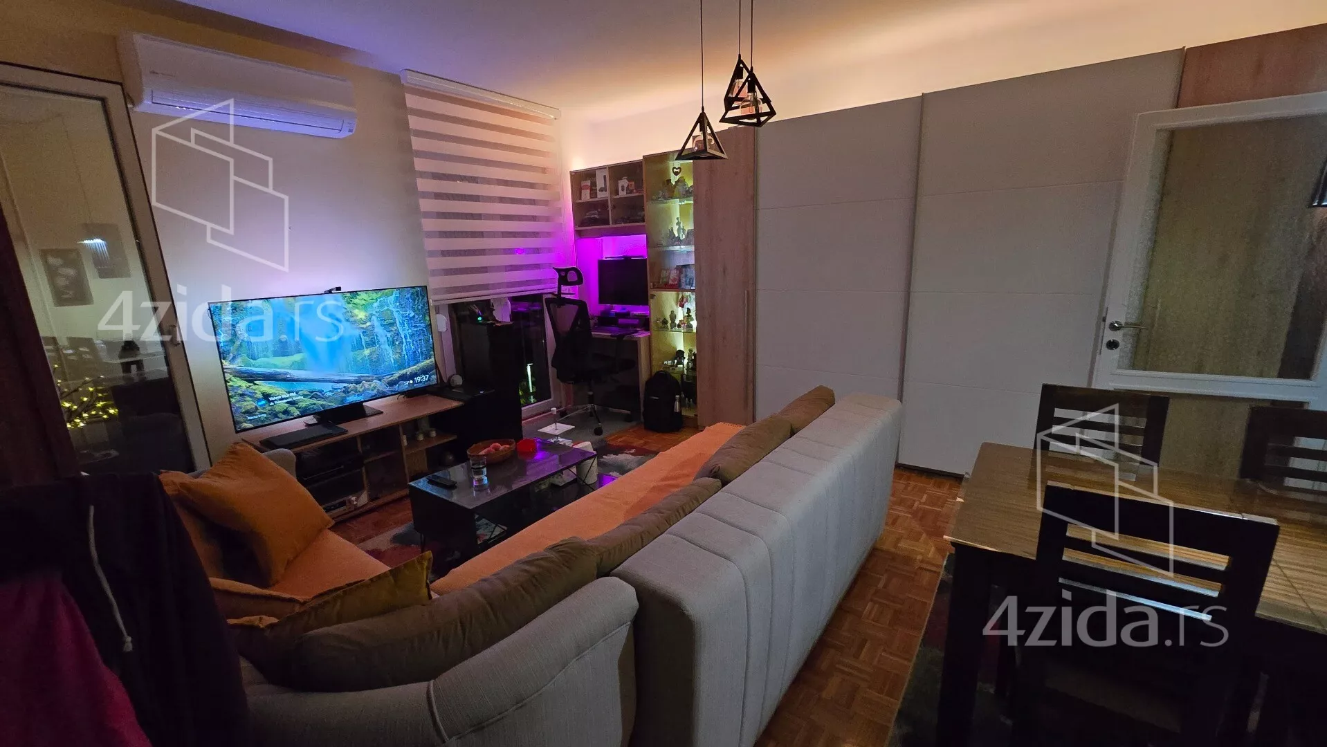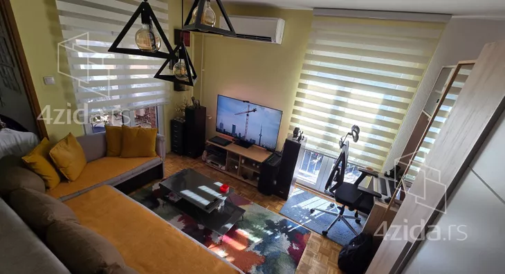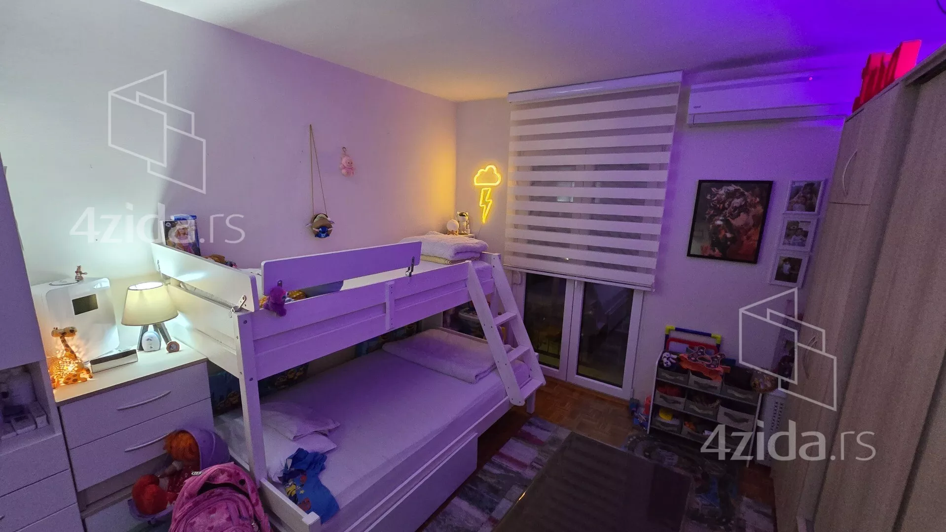 - Opremljenost: Namešteno - internet, TV, klima, veš mašina, kuhinjski elementi, sudo mašina, frižider, zamrzivač, šporet, rerna, ležaj, plakar, ugradni plakar, kancelarijski nameštaj