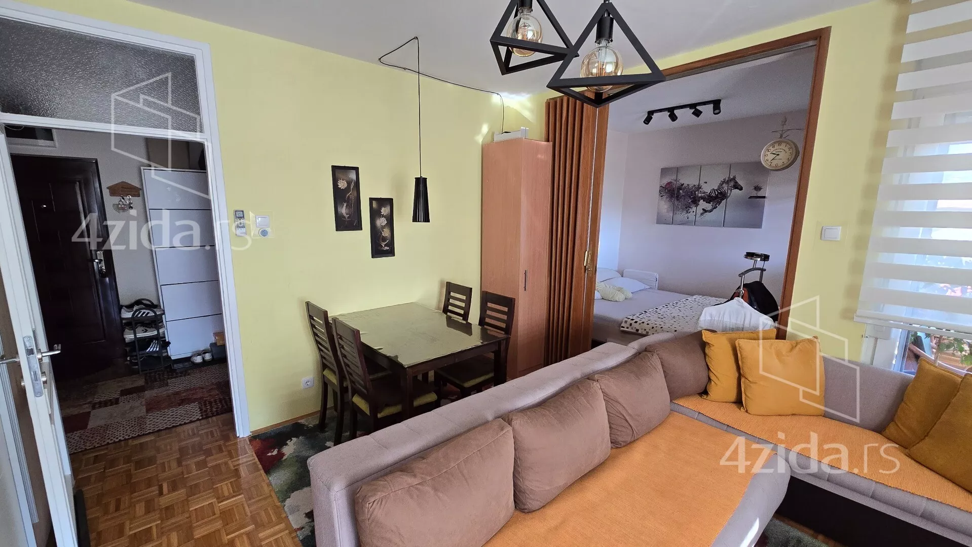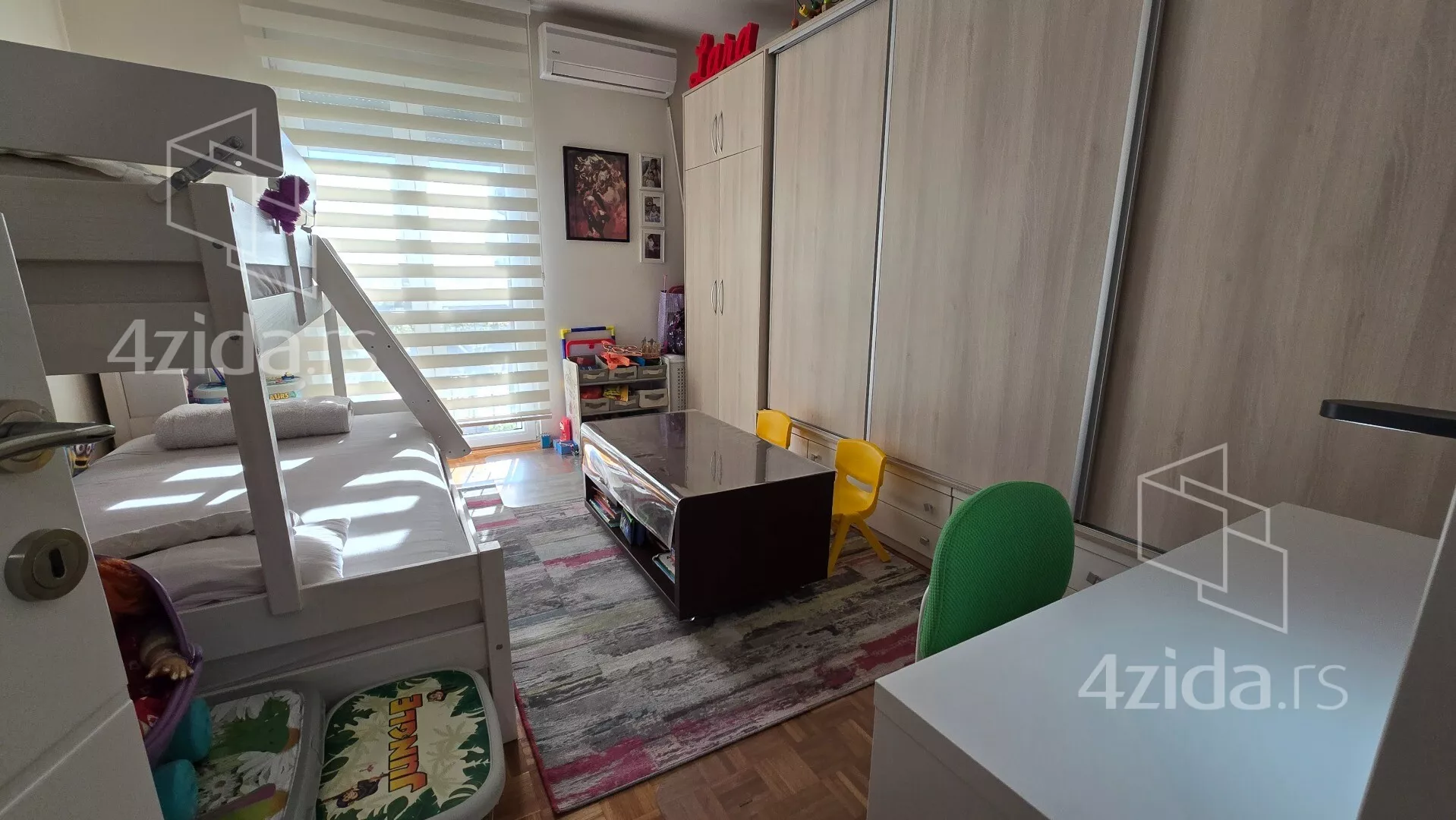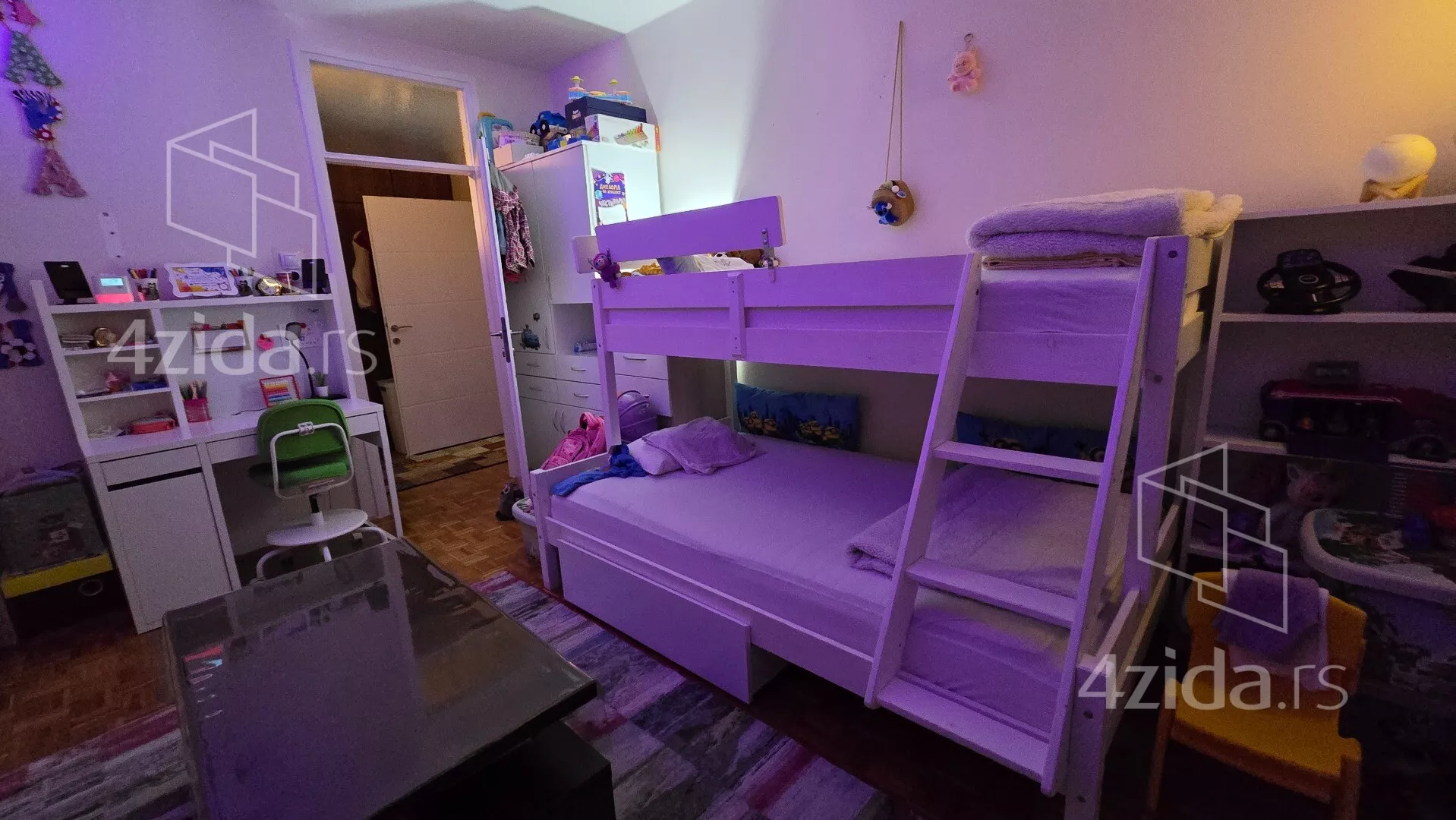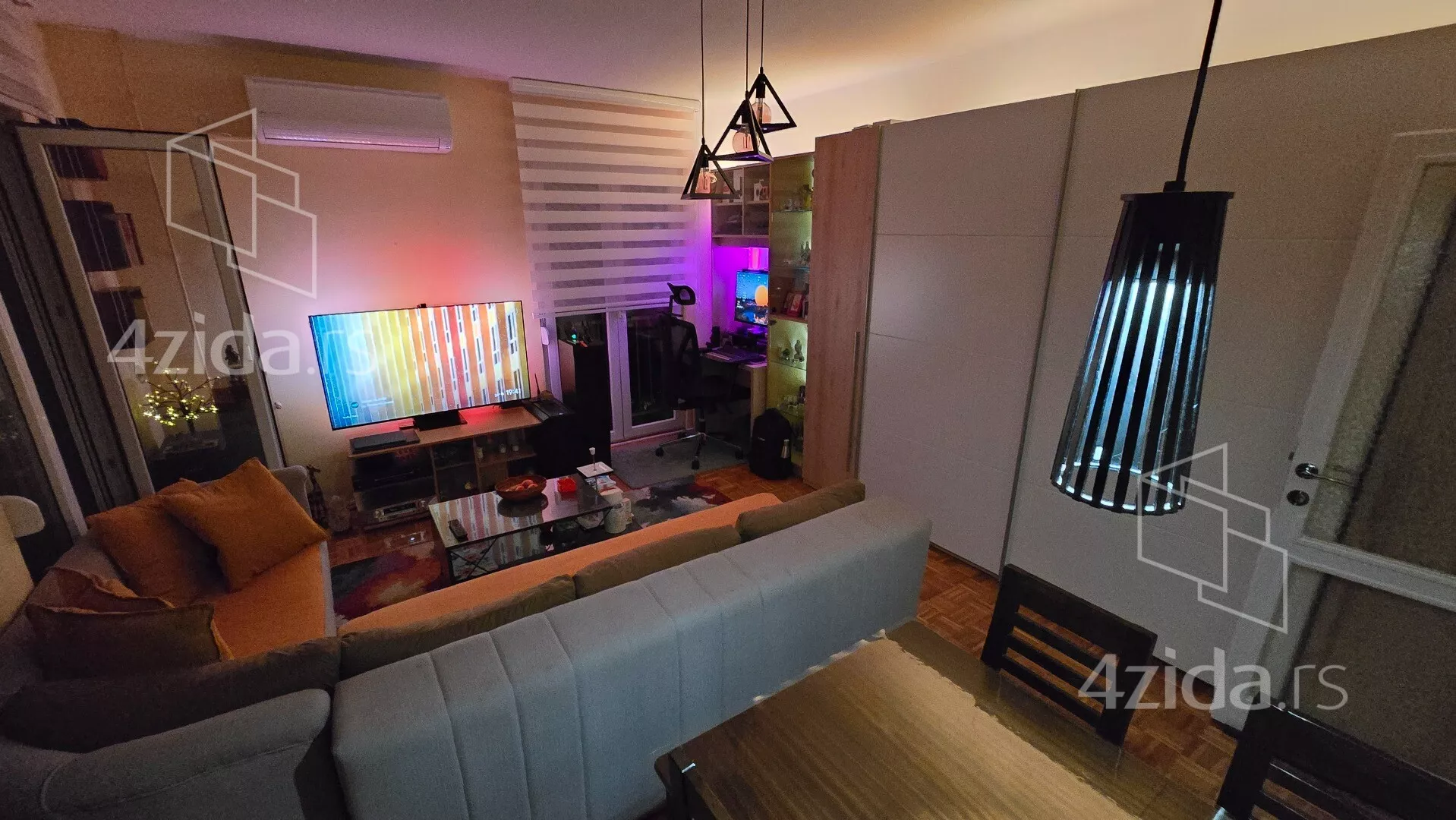 - Opremljenost: Namešteno - internet, TV, klima, veš mašina, kuhinjski elementi, sudo mašina, frižider, zamrzivač, šporet, rerna, ležaj, plakar, ugradni plakar, kancelarijski nameštaj