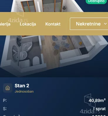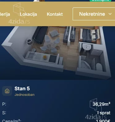 Stanovi koji su na raspolaganju su 29,20m2 ; 36,29m2; 40,89m2;40,94m2 ; 49,83m2