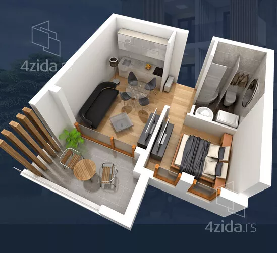 - Prostorije: kupatilo, terasa