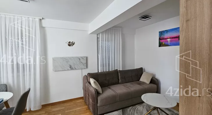 - Opremljenost: Namešteno - internet, TV, klima, veš mašina, kuhinjski elementi, frižider, zamrzivač, šporet, rerna, ležaj, plakar, ugradni plakar