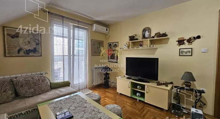 Na prodaju je komforan stan–apartman površine 53 m², smešten na trećem spratu od ukupno četiri u novijoj stambeno–poslovnoj zgradi, odmah pored hotela „Kralj“, jednoj od najlepših lokacija u Vrnjačkoj Banji.