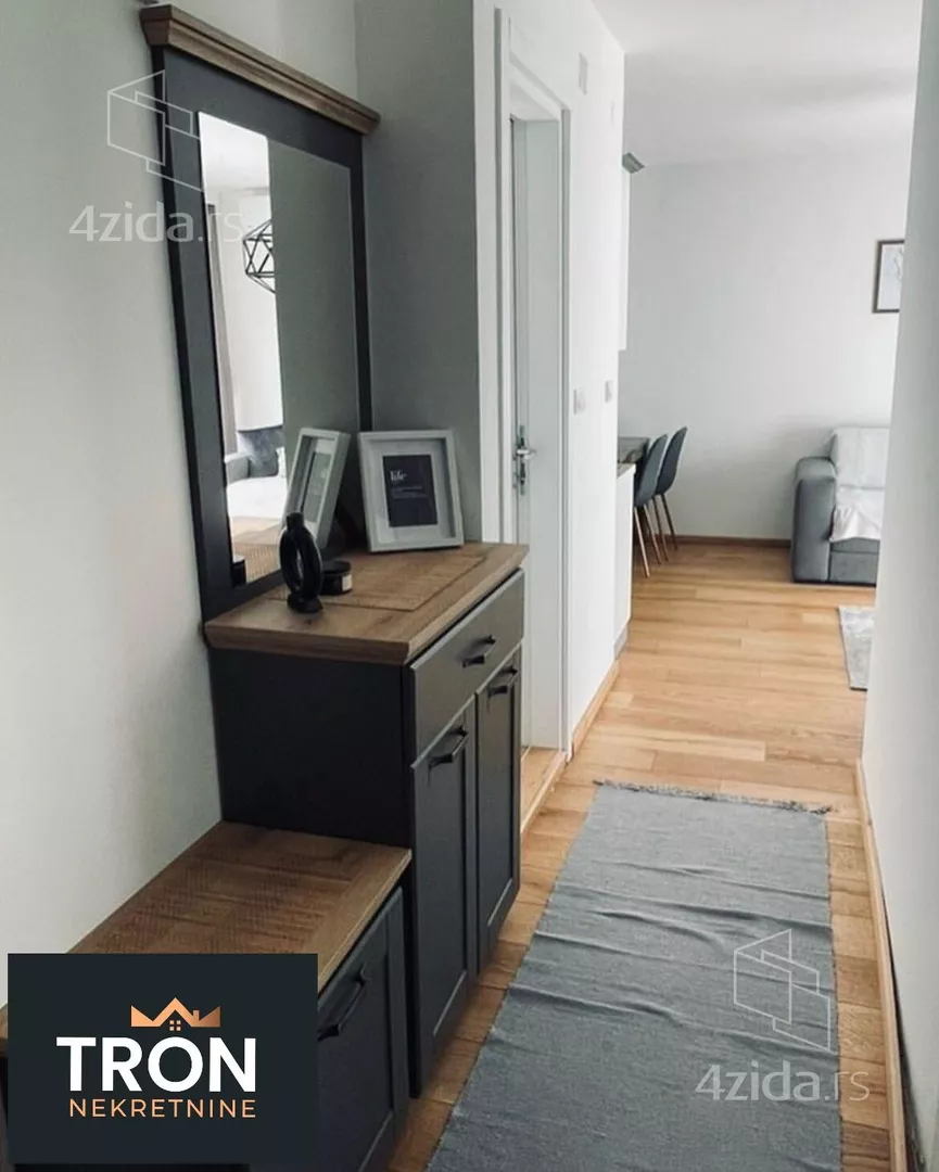Stan se nalazi na prvom spratu stambene zgrade i kompletno je opremljen modernim i funkcionalnim nameštajem.