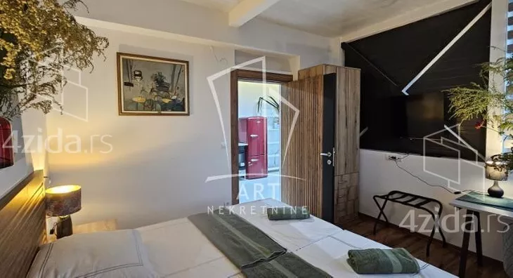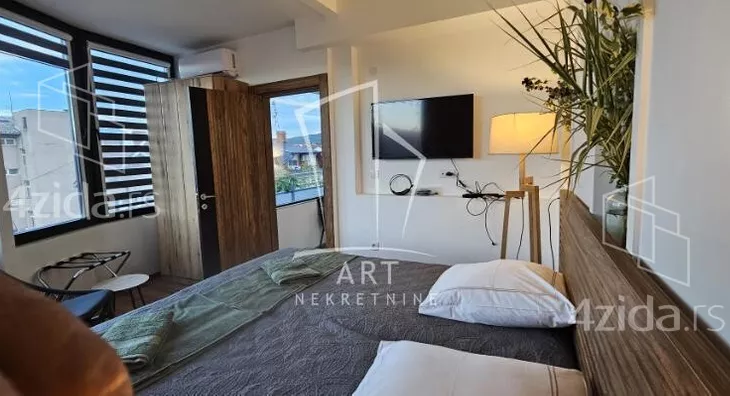 Fenomenalan moderno i luksuzno opremljen stan na prelepoj lokaciji u Vrnjačkoj banji. Idealnog je rasporeda i strukture. Stan se sastoji od 2 sobe, 2 terase, 2 kupatila, prostrane kuhinje i komfornog dnevnog boravka. Stan se nalazi u okviru prelepe zgrade i trostrano je orijentisan. U okviru zgrade sa nalaze i brojni zanimljivi sadržaji a pre svega bazen i đakuzi na krovu zgrade sa ležaljkama do kojeg vodi panoramski lift direktno, kao i kafe restoran na spratu ispod, teretana, sto za stoni tenis. Postoji mogućnost kupovine i zakupa garaže i natkrivenih parking mesta. Ukoliko ste oduvek želeli luksuzan životni prostor u mirnom, a opet mondenskom mestu, biseru srpskog turizma, ovo je definitivno idealna prilika za Vas, ne prpoustite je! Agencijska provizija 2% Agent: Ivan Vujačić br. licence 4181 "Art nekretnine" d.o.o. Beograd.Reg. br. 339. 011... (prikaži broj telefona) IV .