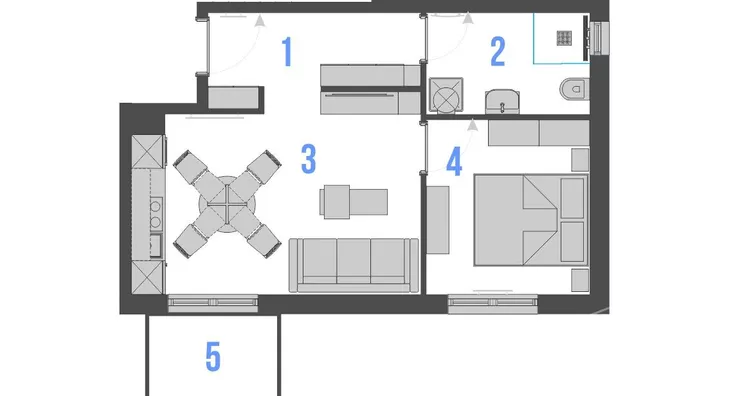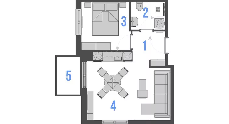 2. Tipske stanove druge grupe čine stanovi 6 (prvi sprat), 10 (drugi sprat), 14 (treći sprat), 18 (četvrti sprat) i 22 (peti sprat). Stanovi ovog tipa raspolažu kvadraturom od 38.20 m2. Cena po kvadratu: 1800,00 e + PDV;