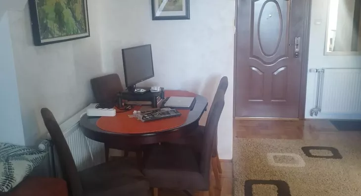 - Opremljenost: Namešteno - kuhinjski elementi, frižider, zamrzivač, šporet, rerna, ležaj, plakar, ugradni plakar