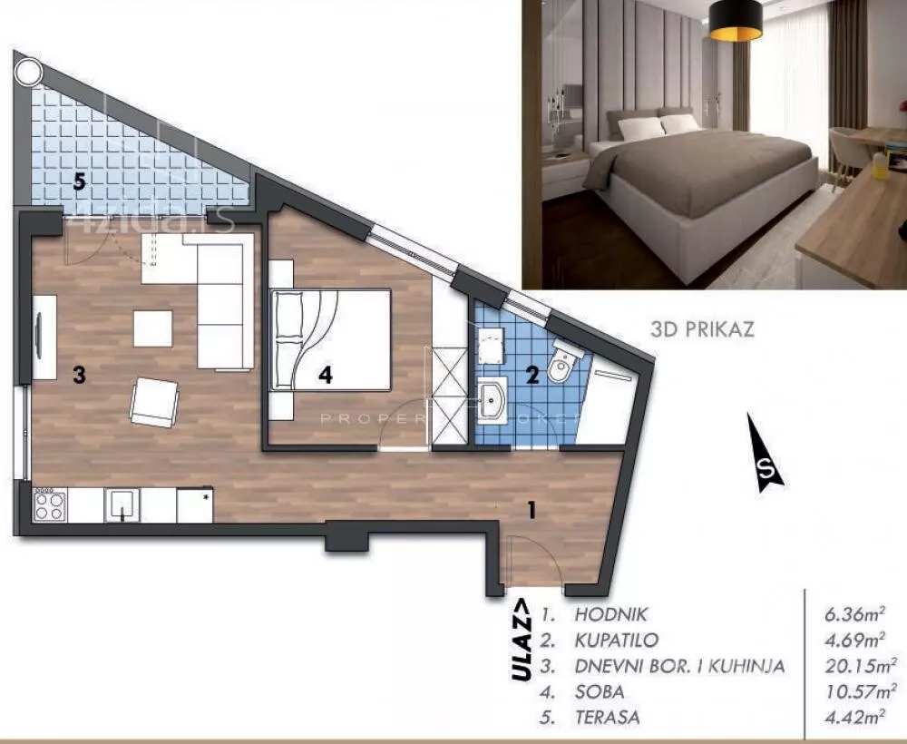 Dvosoban stan na prodaju, Miladina Pećinara, 108.755€, 47m²