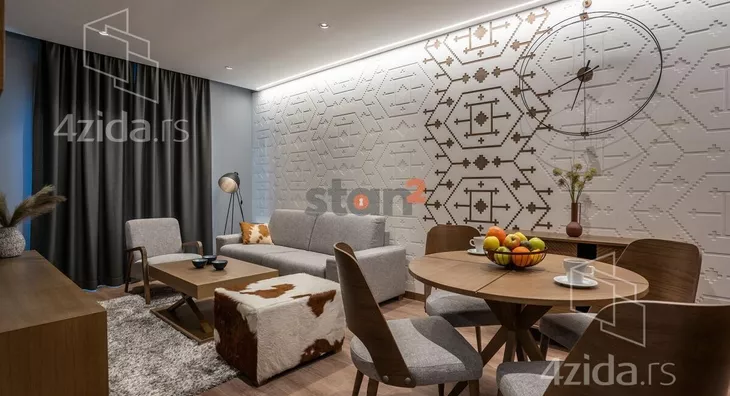 Svi apartmani su tipski opremljeni i nalaze se u sistemu rentanja ovog komleksa. Cena u oglasu je cena apartmana koji može da se kupi i na kredit, a za koji imate pravo na povraćaj PDV-a. Za opremanje se doplacuje dodatno. U ovu cenu je uračunat kompletan nameštaj, bela tehnika, TV, peškiri, posteljina, kompletno opremljena kuhinja i sl.